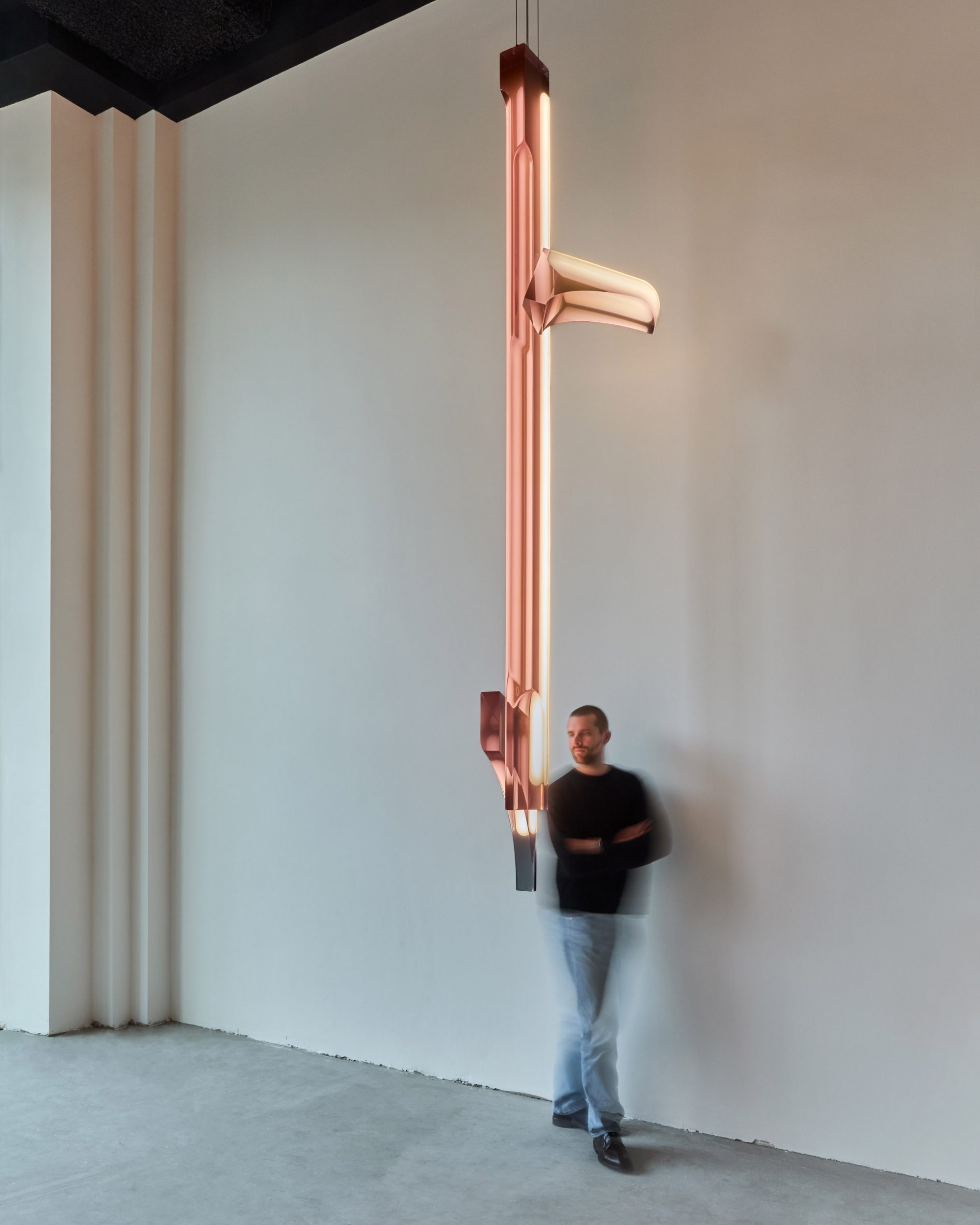 Avec ses plus grandes pièces mesurant plus de six mètres et pesant plus de cent kilos, la collection rassemble dix ans de recherche sur les matériaux menée par le designer. À cette échelle, des défis structurels entraient également en jeu.
