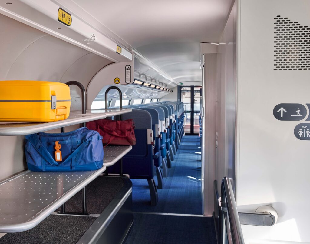 - Espaces UFR (Usagers en Fauteuil Roulant) agrandis, incluant cinq places adaptées, une restauration à la place via commande en ligne, et des sanitaires repensés sur la largeur de la voiture.