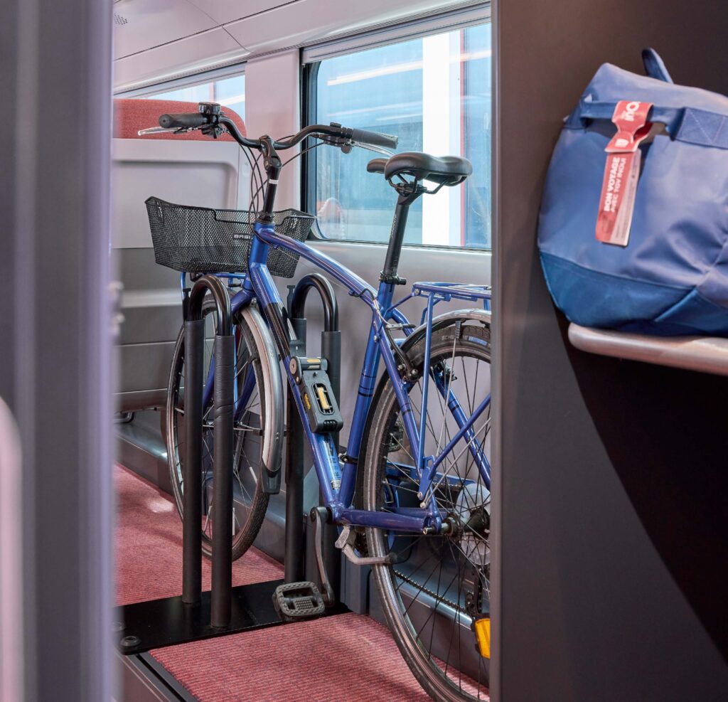 Des espaces dimensionnés et optimisés pour les vélos seront disponibles, selon les rames ! Une nouvelle ère pour la multimodalité qui devait pour l’instant se contenter de vélo démonter et rangés dans des sacs. Qu’en sera-t-il à l’usage ? Hâte de tester !