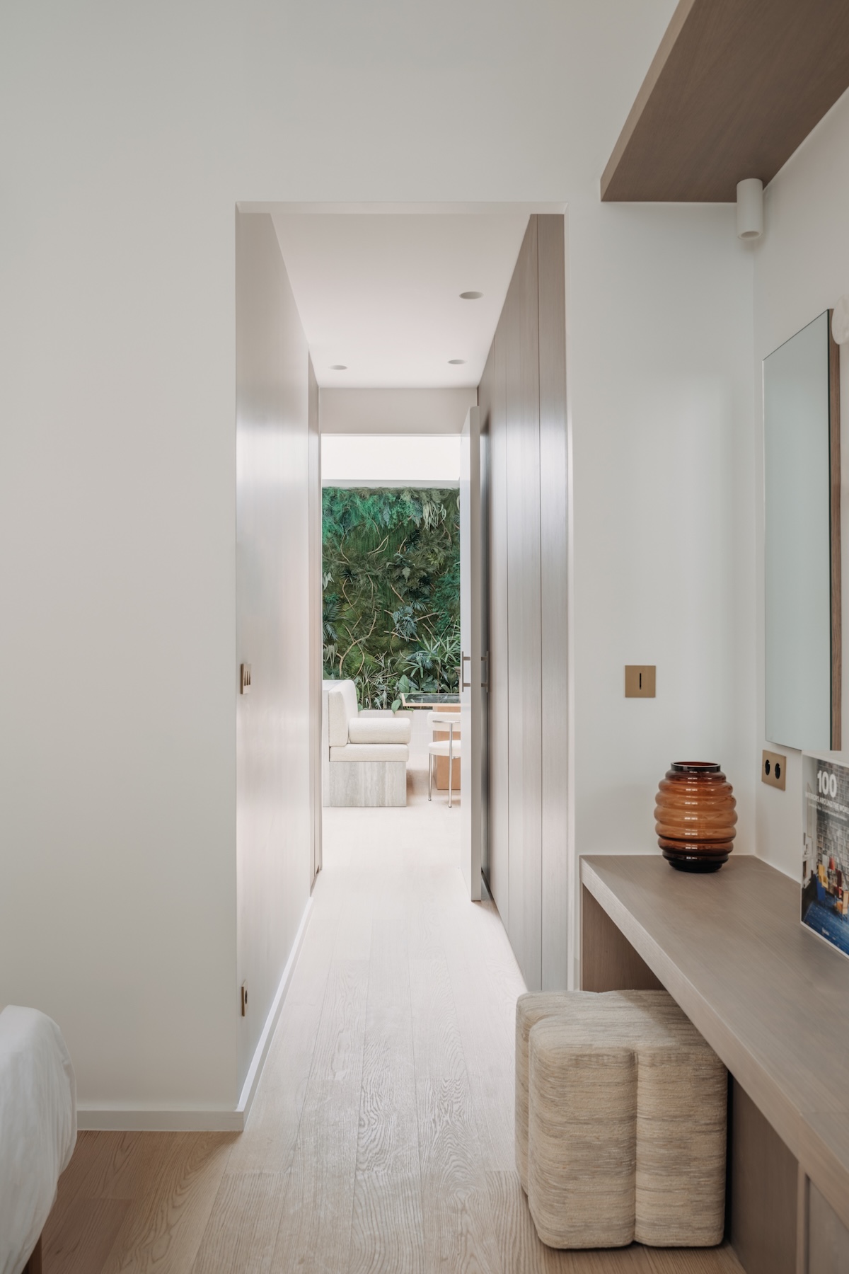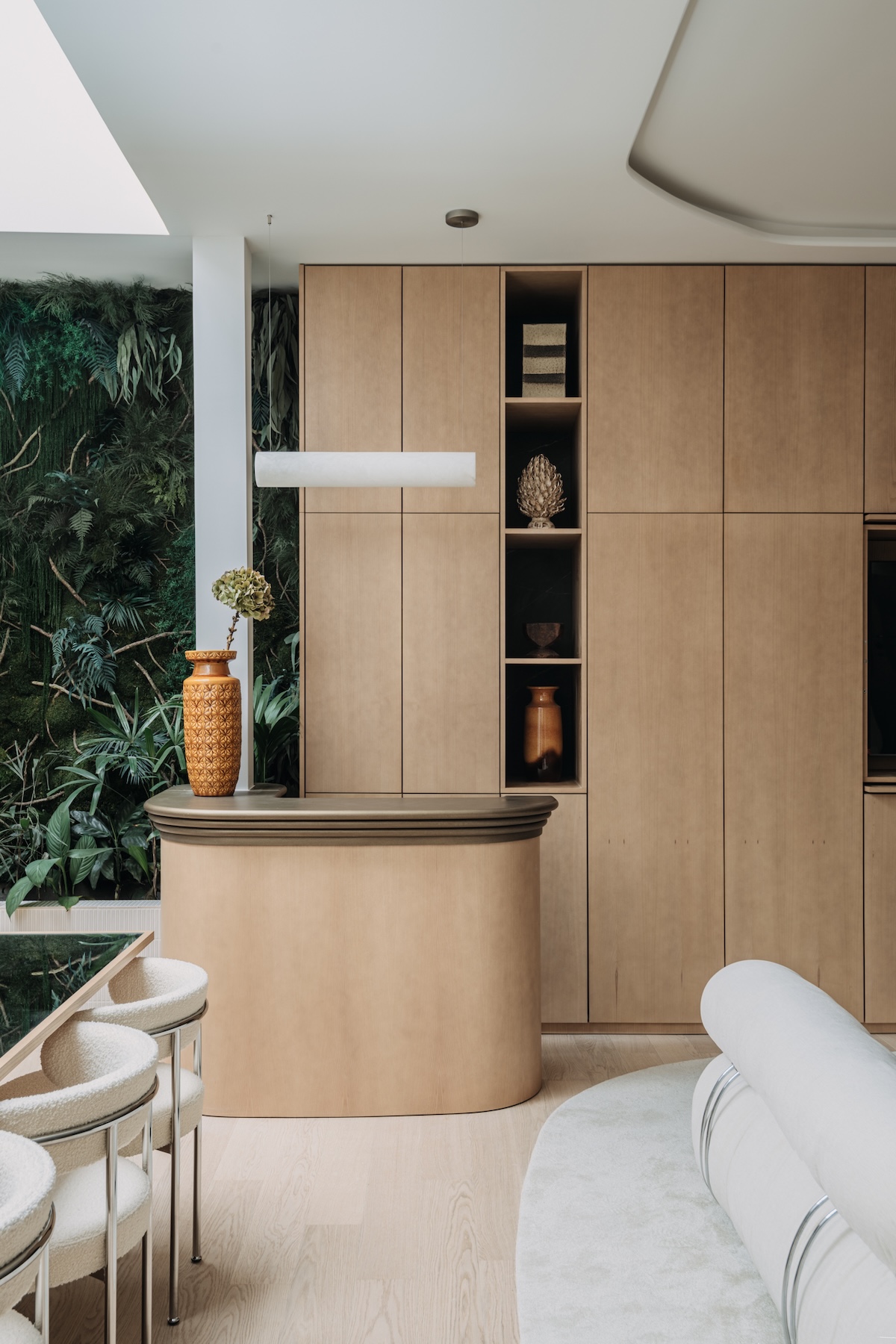 Parmi ces pièces uniques, on retrouve la patine décorative de la cuisine, créant un effet nuage subtil, le revêtement mural panoramique en toile de jute représentant la Vallée de Vinales ou encore le mur végétal composé de plantes stabilisées et cultivées en hydroculture.