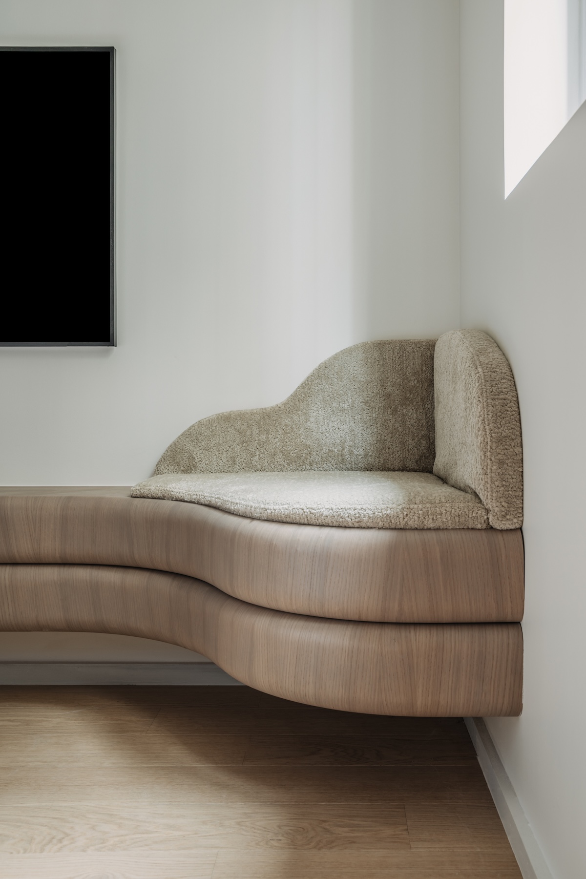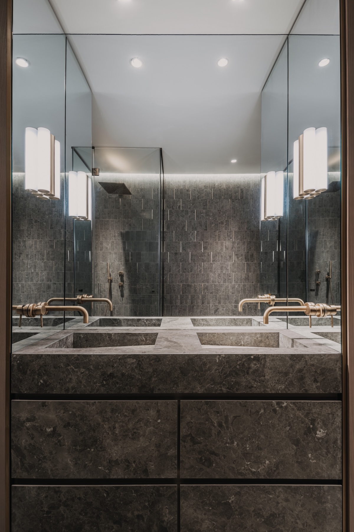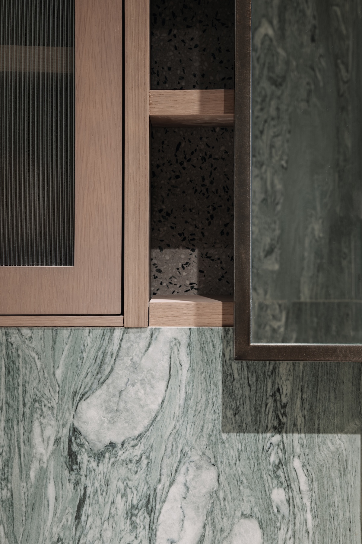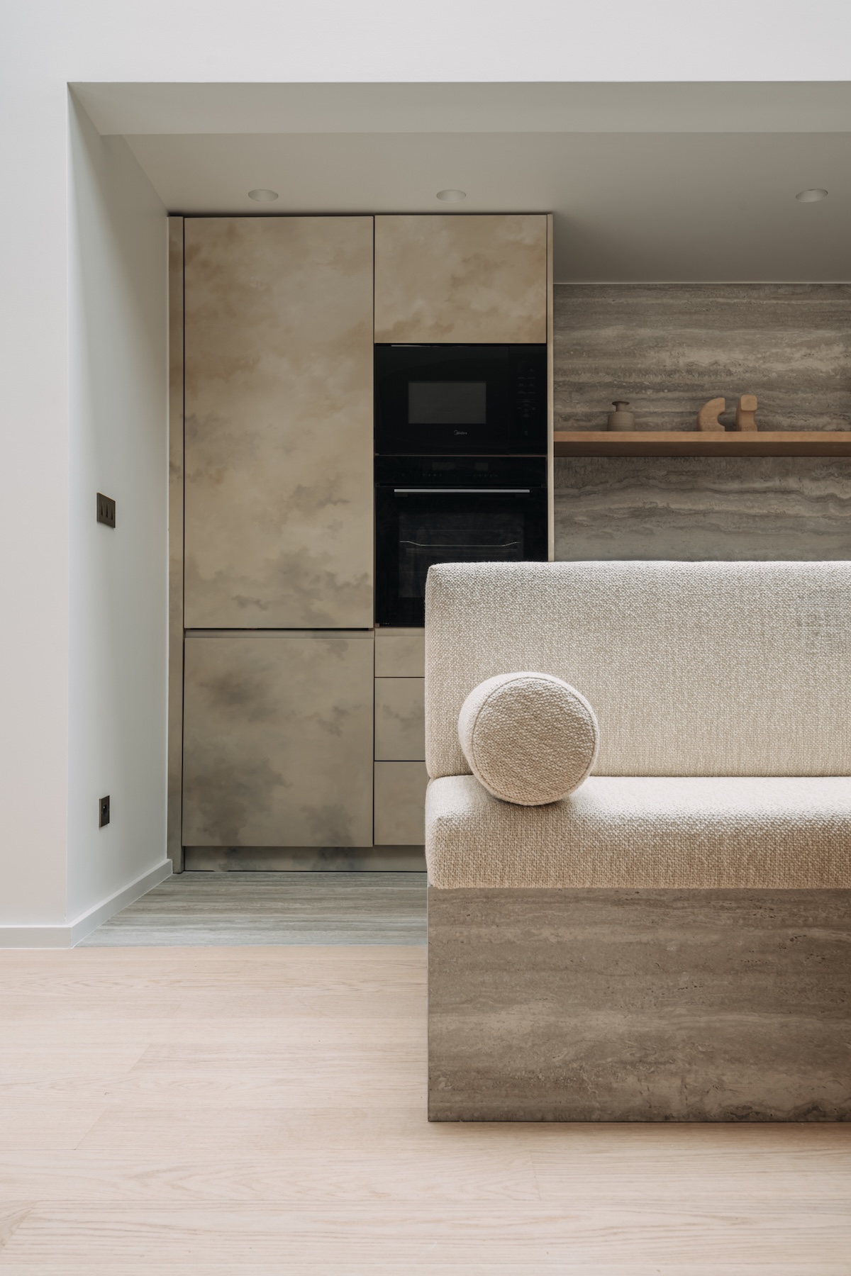 Parallèlement à la réorganisation de l’espace et de sa circulation, MERSI a méticuleusement façonné l’identité de l’appartement, en choisissant des matériaux d’exception, réalisés par des artisans et artistes.