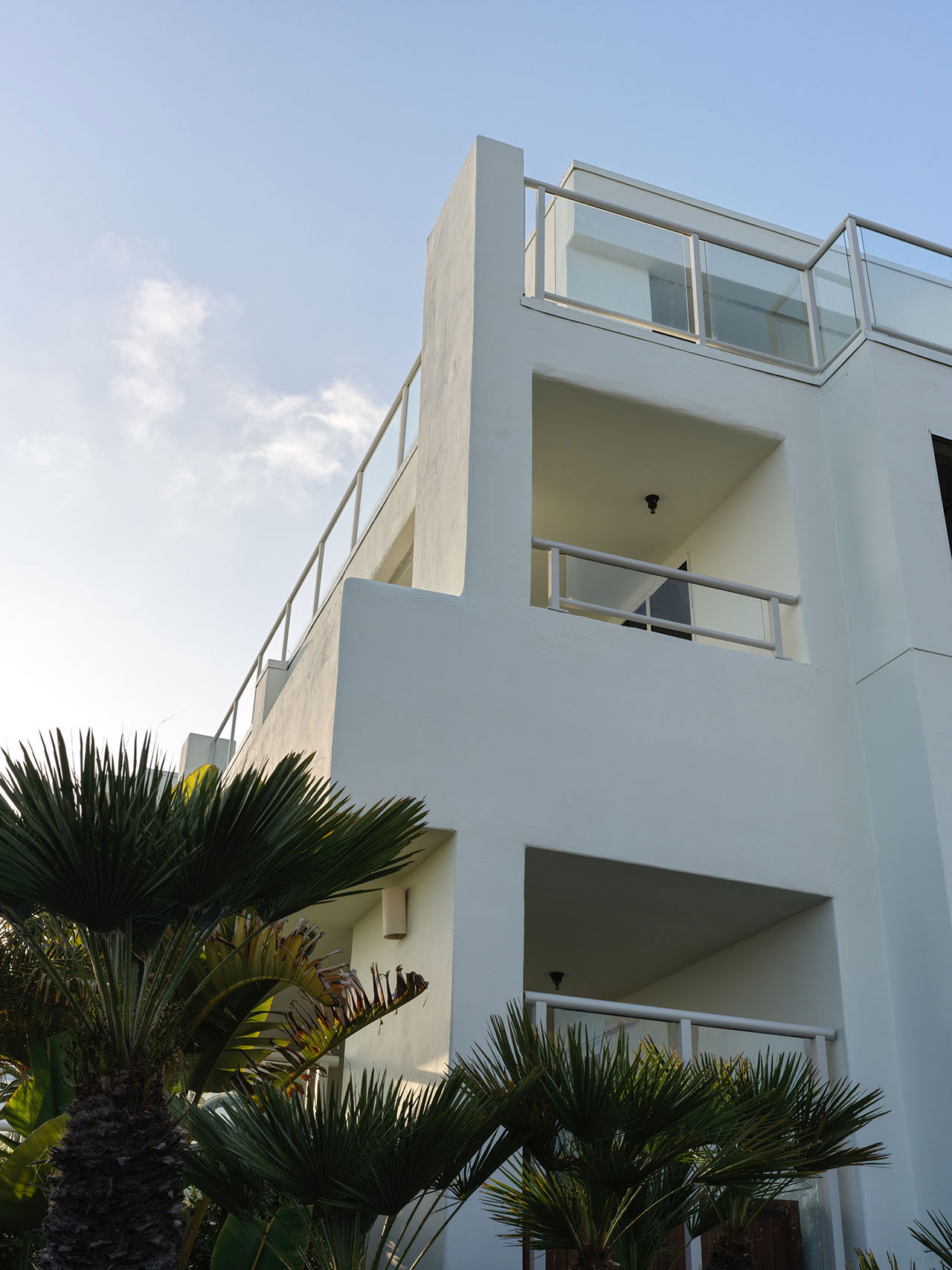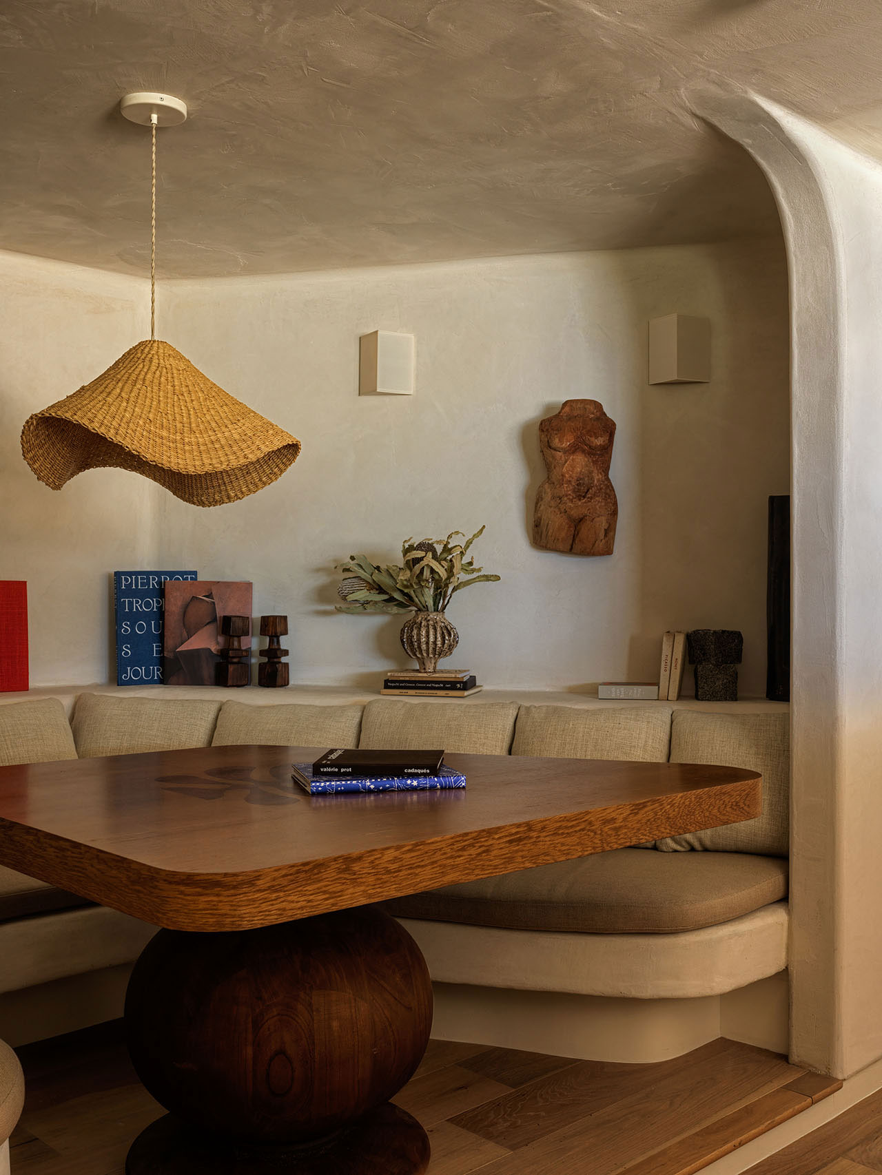 L’intervention visait à faciliter la réflexion face à l’océan et à favoriser les échanges entre les hôtes. Cet objectif a été atteint grâce à l’introduction apaisante et familière de sculptures en relief imposantes prenant des ombres spectaculaires selon les heures de la journée ; d’œuvres d’art sérigraphiées ; de plaids tissés ; et d’autres éléments personnalisés évoquant une dimension folklorique.