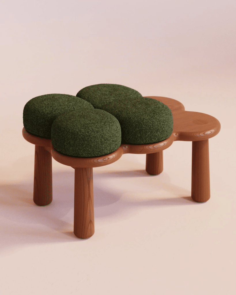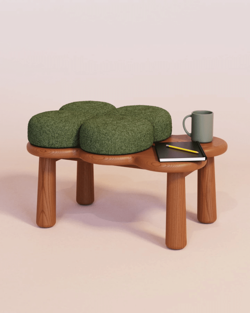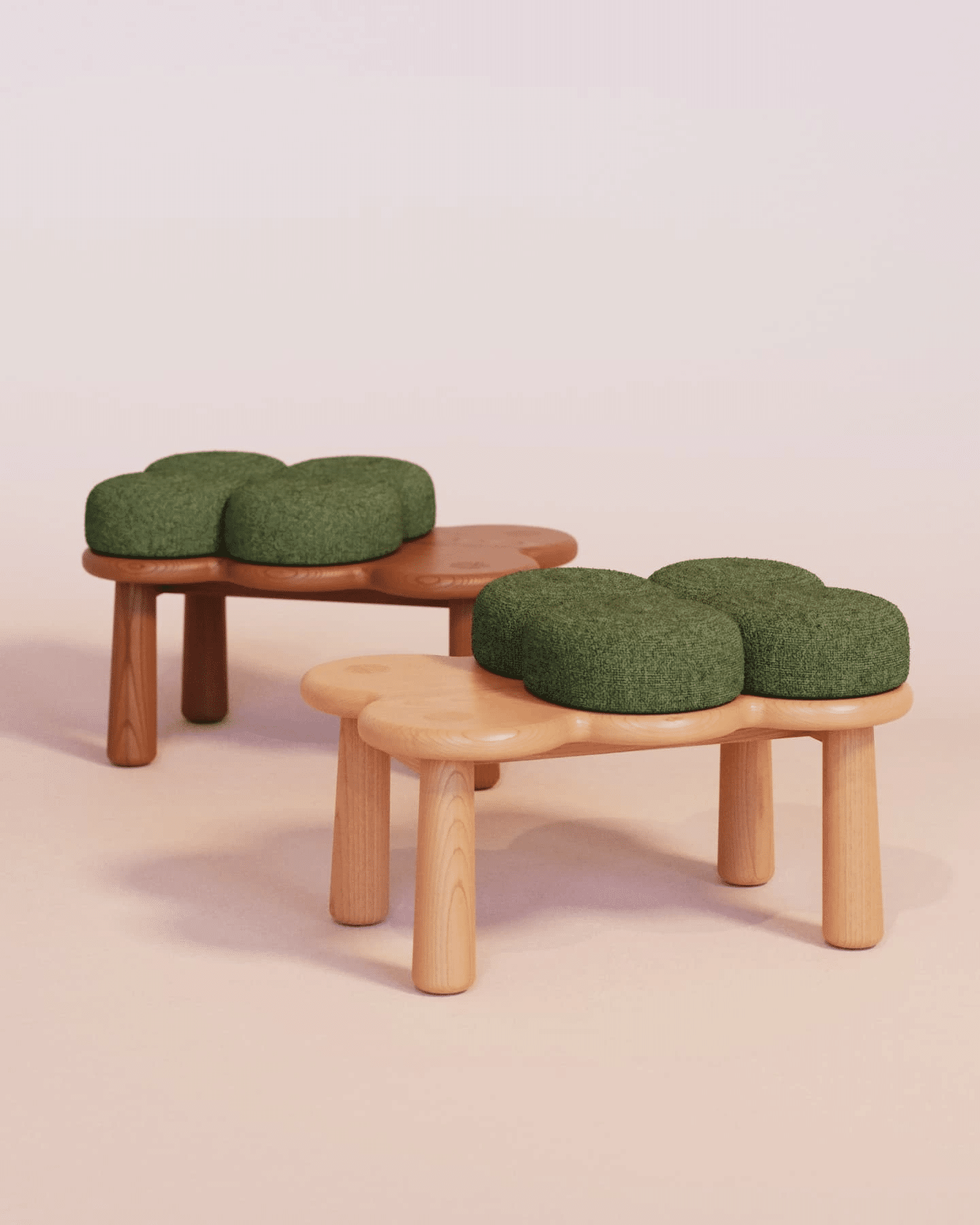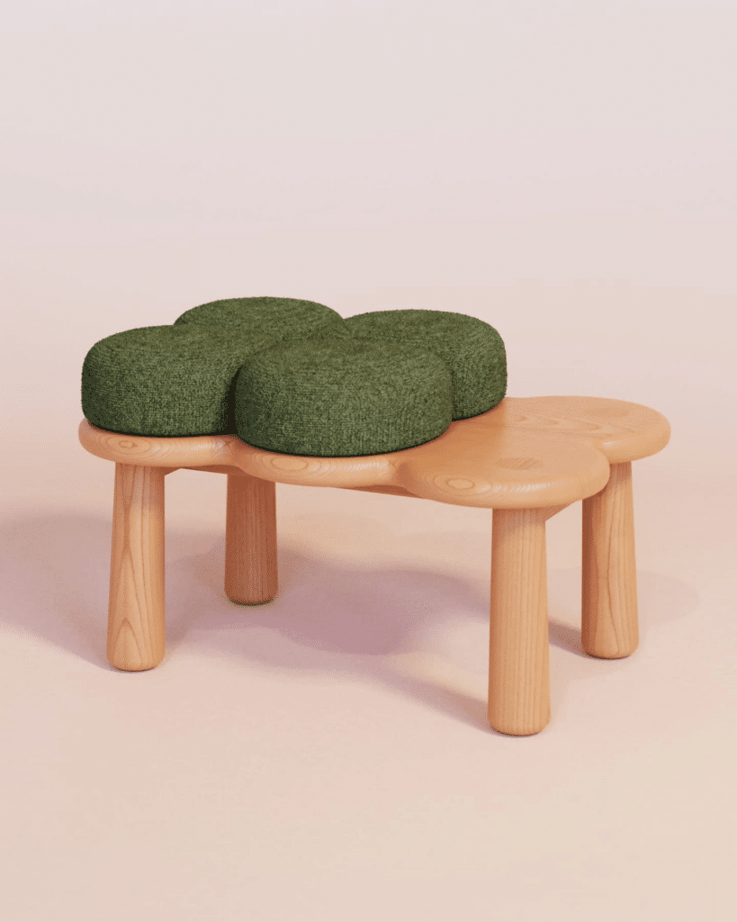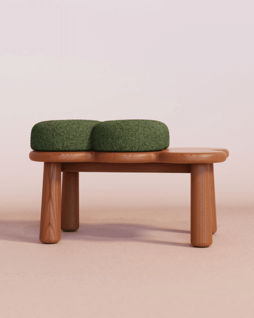 Inspiré par la nature, le Saku Bench se distingue par sa surface en bois agrémentée d’un coussin en forme de fleur, laissant une partie libre pouvant servir de table d’appoint. Cette conception vise à apporter une touche conviviale et amusante à l’espace de vie, tout en offrant une assise confortable et polyvalente.