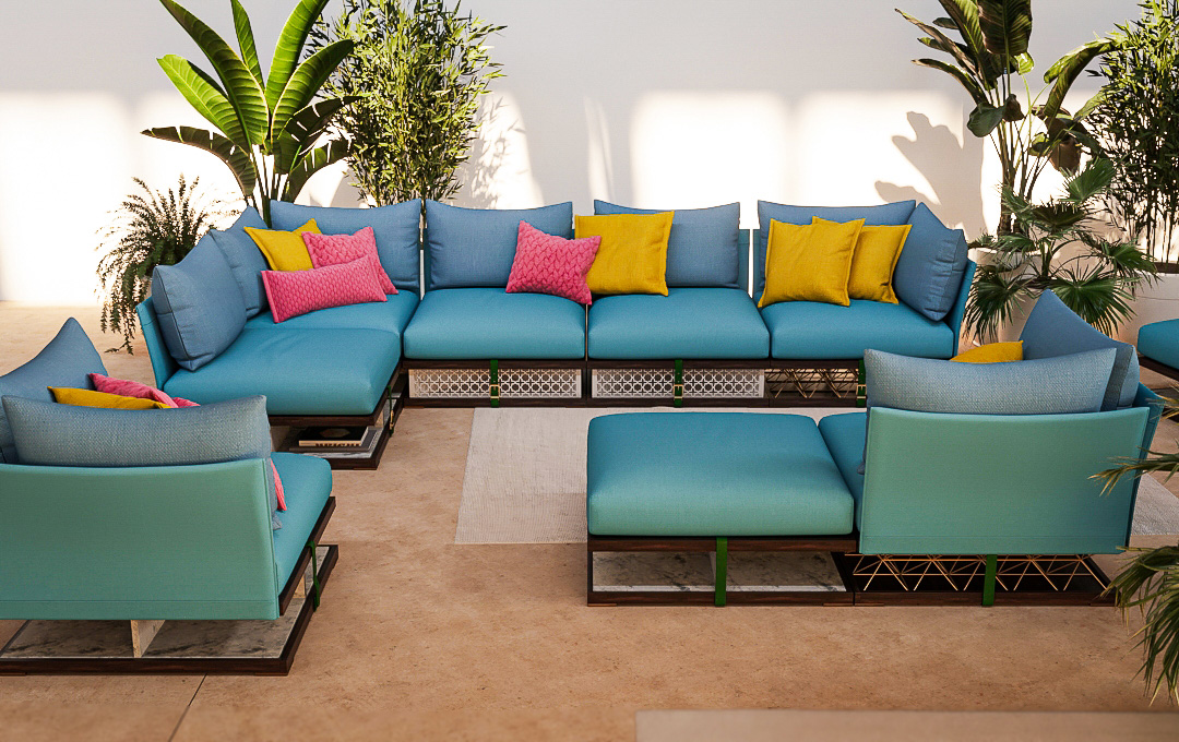 La finesse du travail artisanal marocain se reflète également dans les détails de finition, révélant le savoir-faire unique des artisans locaux avec lesquels Younes Duret collabore régulièrement. Le canapé « Aji n’safrou » est ainsi bien plus qu’un simple meuble : il devient le témoin d’un héritage culturel marocain subtilement revisité.