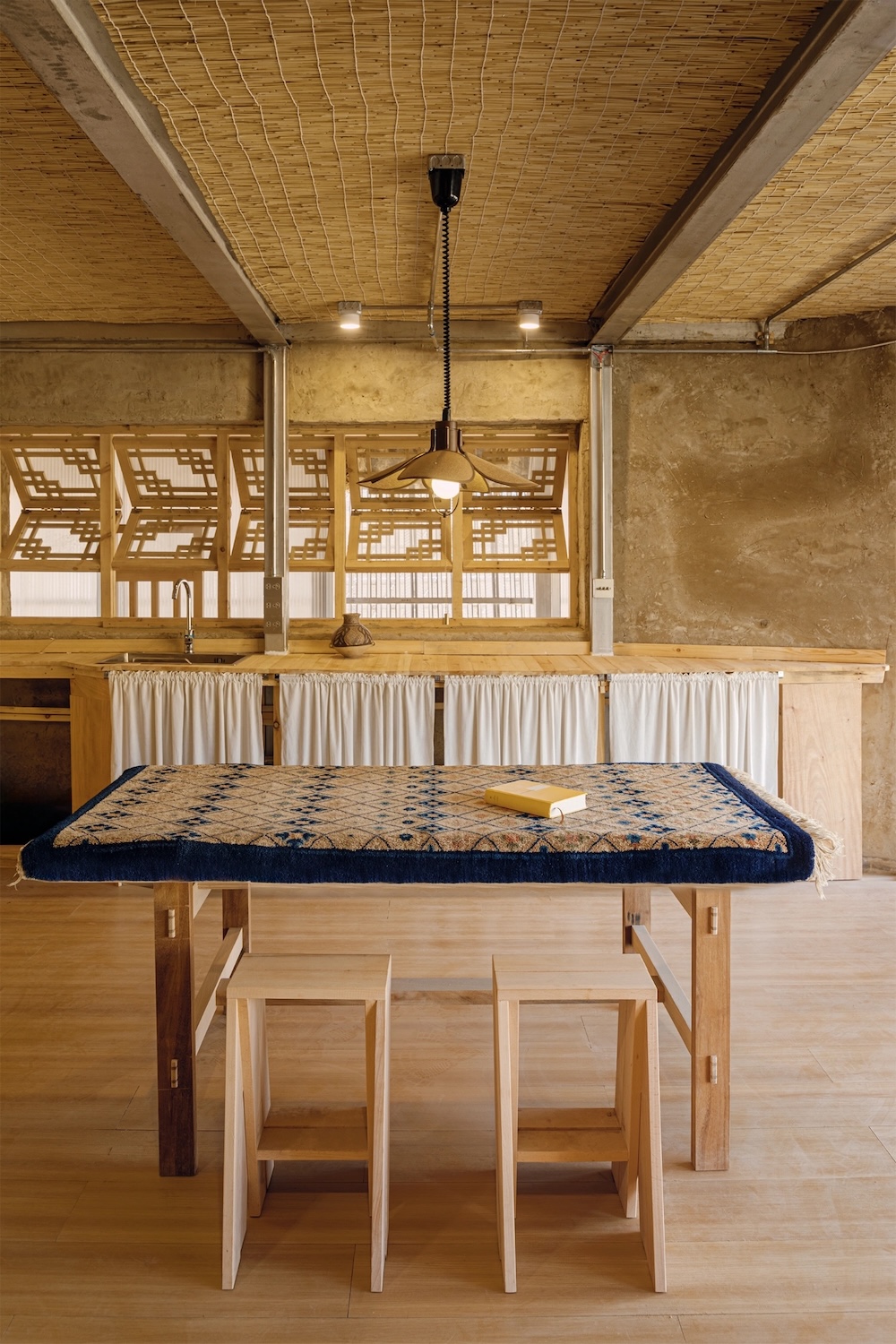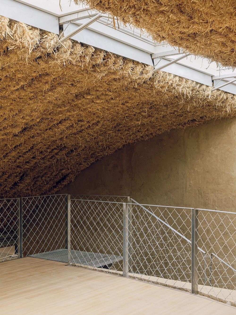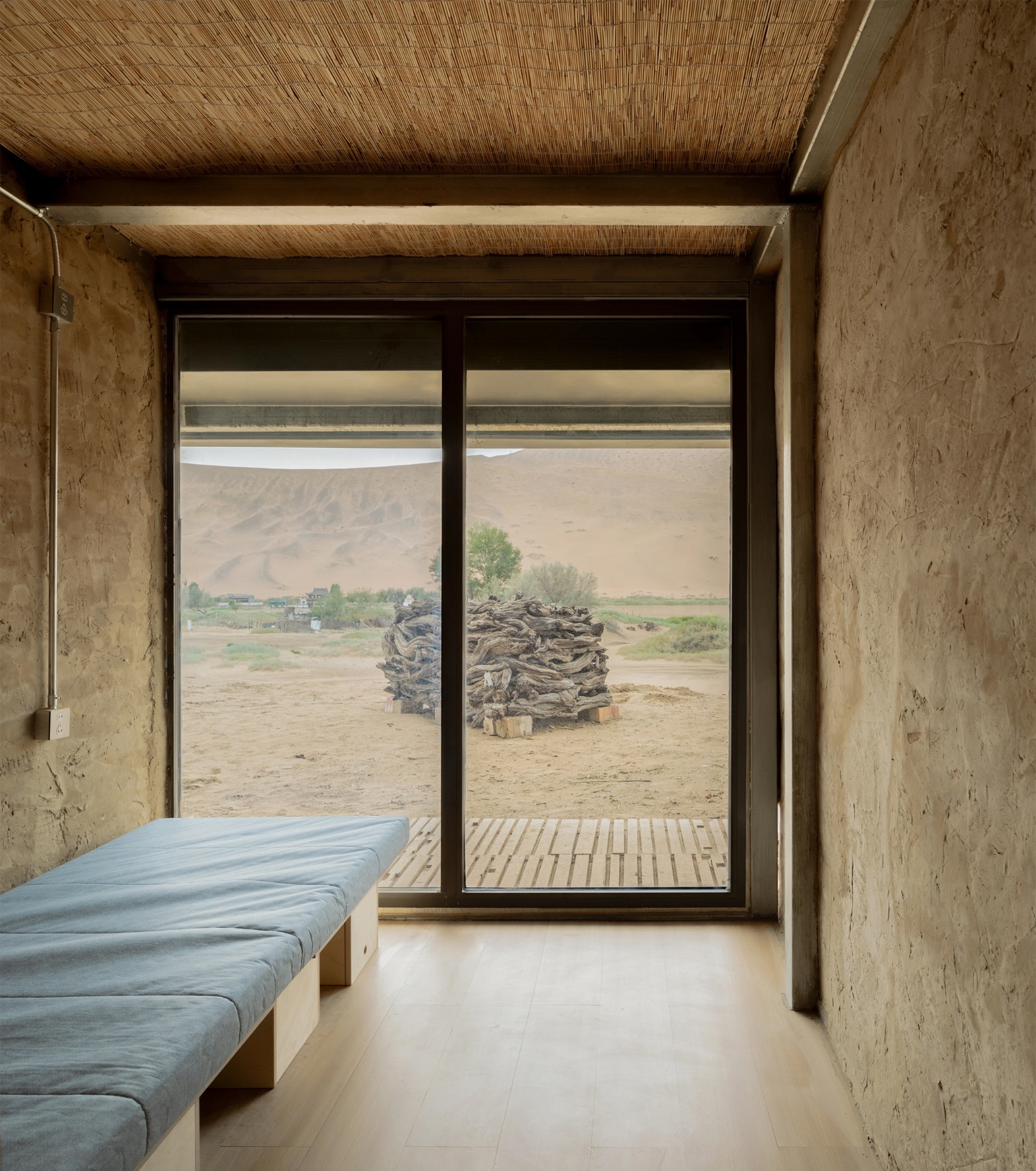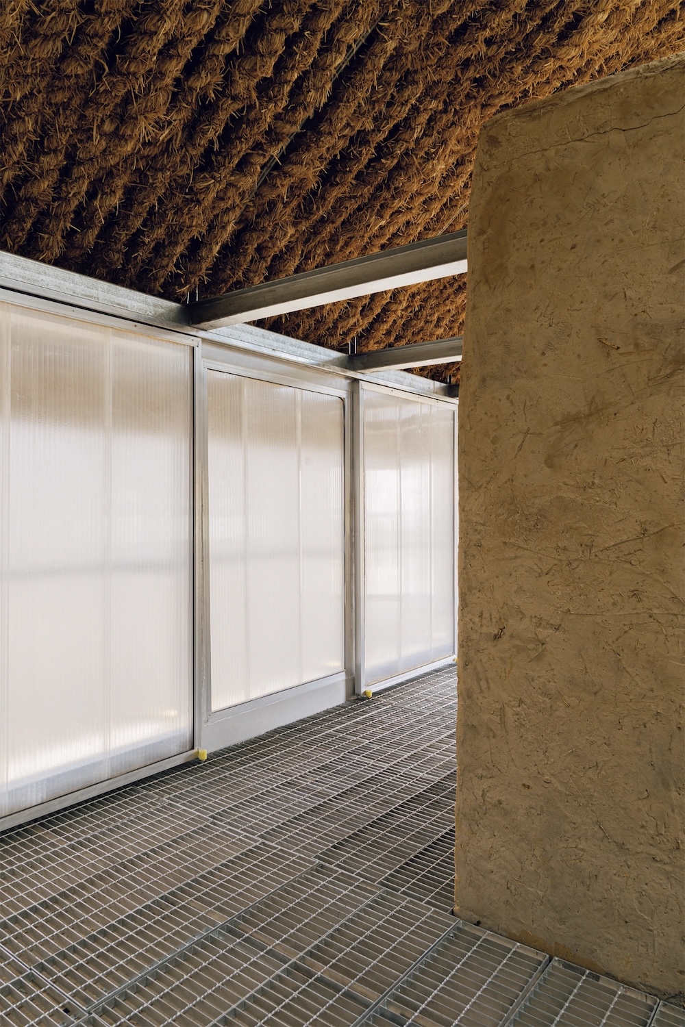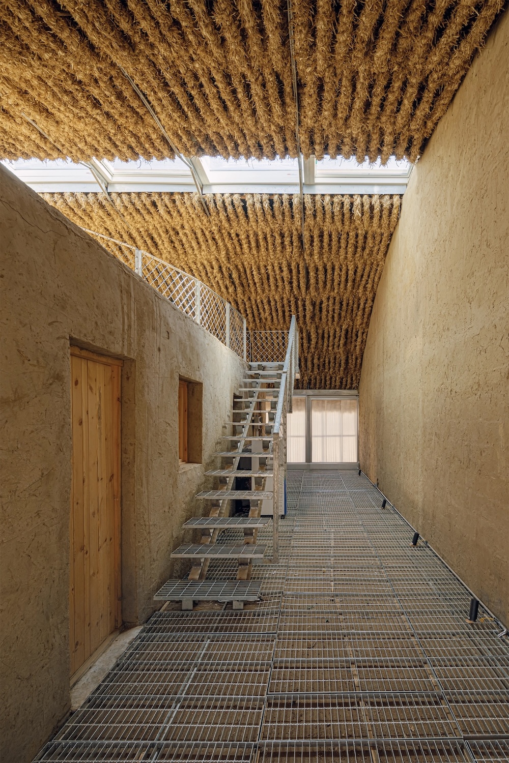 Les murs en briques de paille isolent et ancrent la maison dans la culture matérielle du désert, tandis que l’enveloppe crée un espace intermédiaire flexible, un espace clos pour les activités communes, la préparation des repas et le stockage saisonnier.