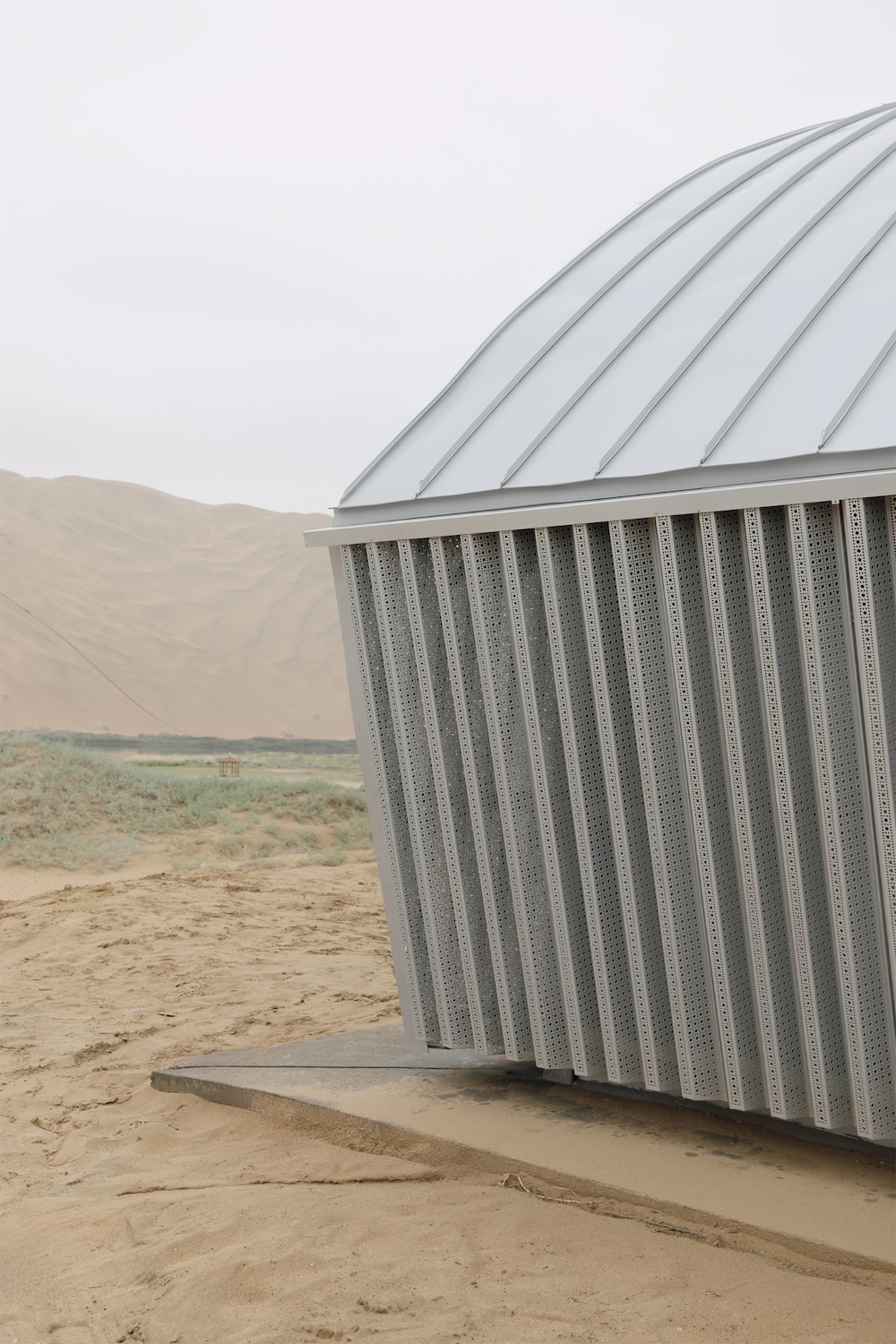 Cette maison située dans le désert de Badain Jaran, en Chine, revisite l’habitat mongol traditionnel avec des briques de paille et une enveloppe métallique, alliant techniques vernaculaires et durabilité contemporaine.