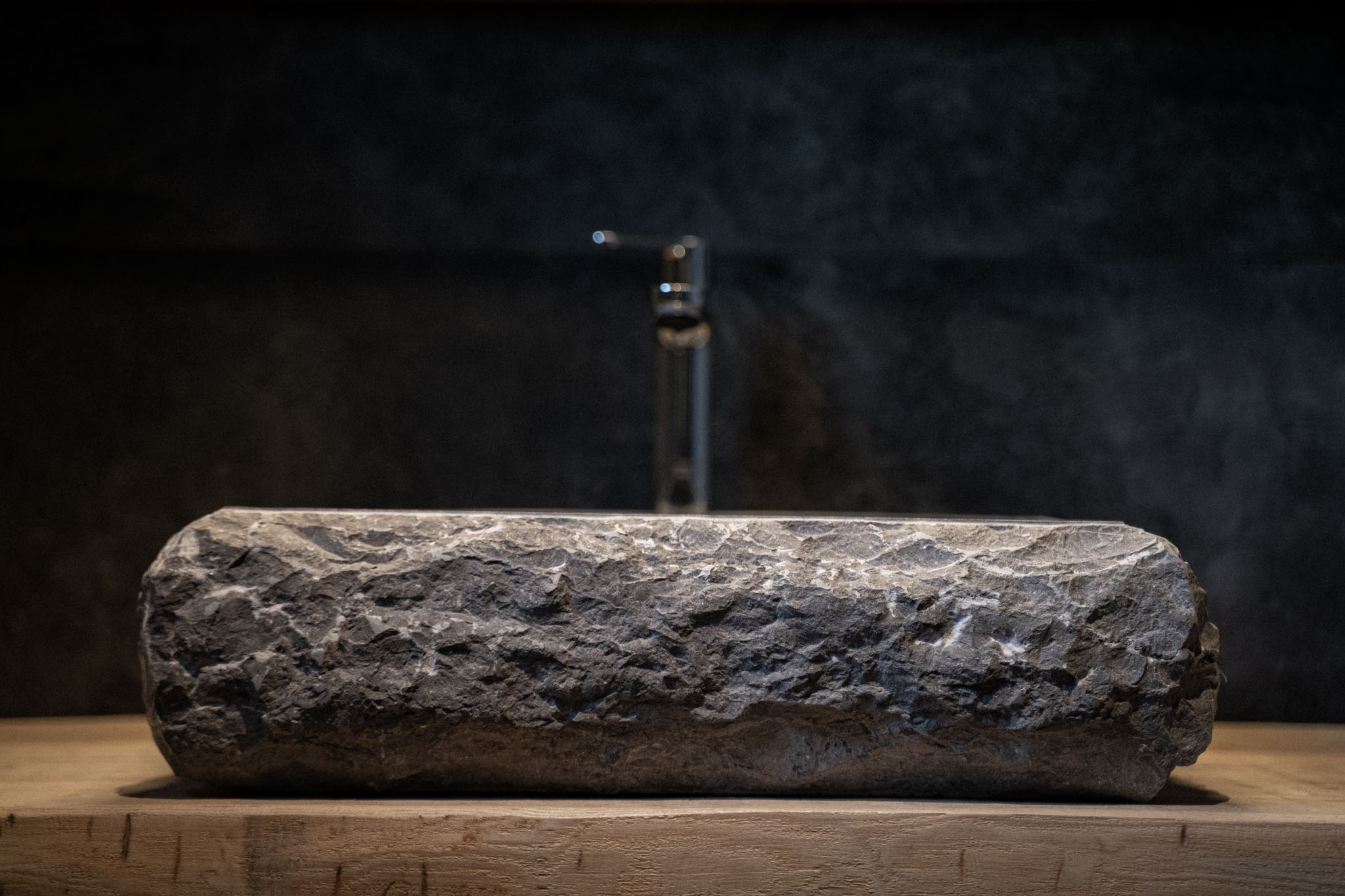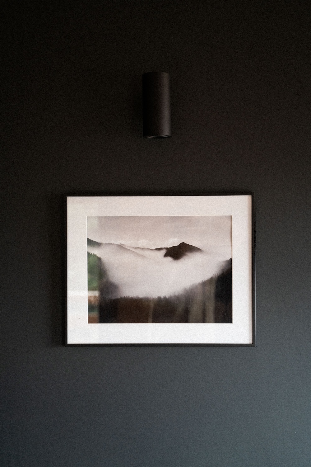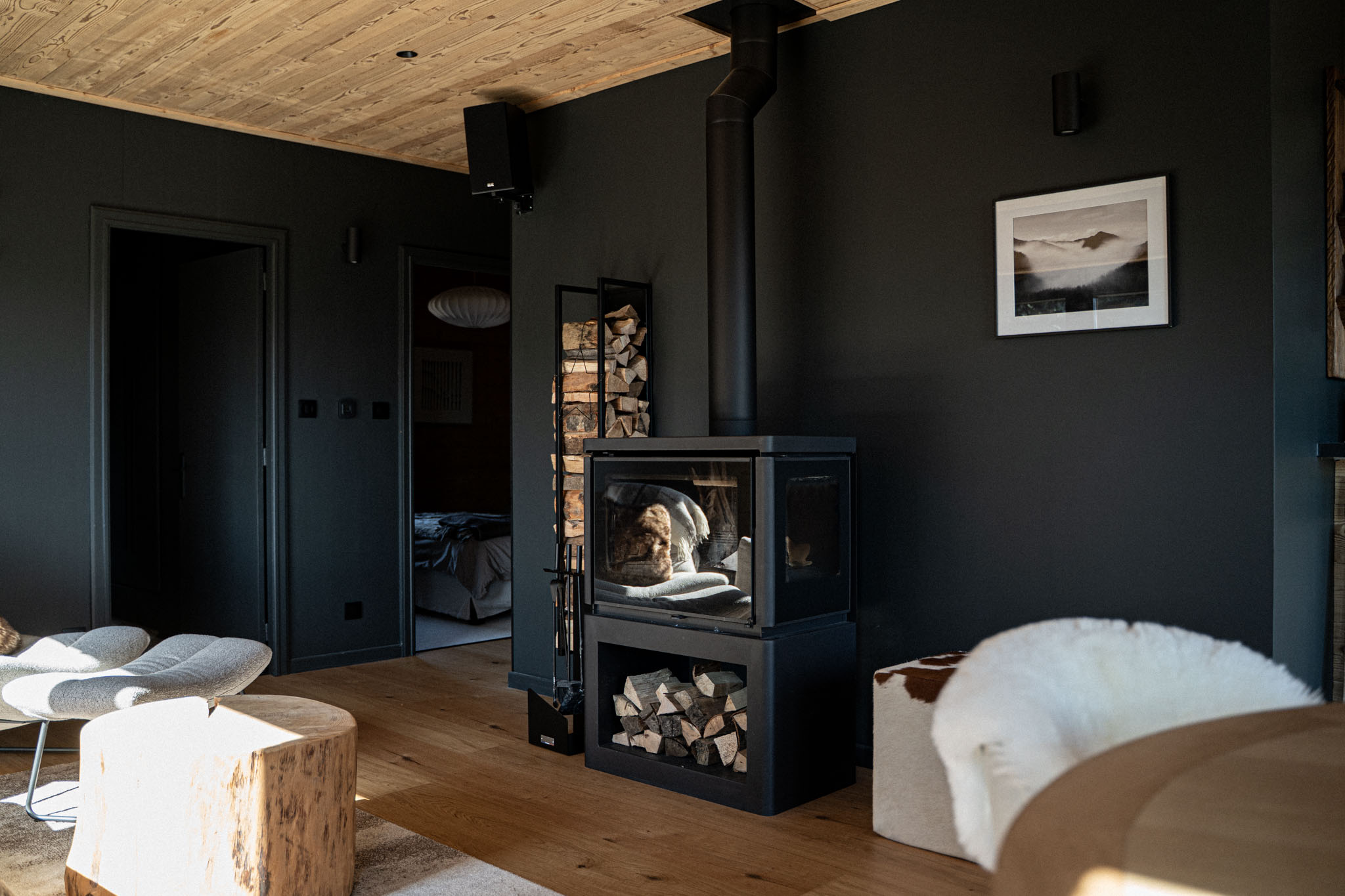 Décoration sobre, alliant noir/anthracite et bois, avec des touches ethniques et montagnardes.