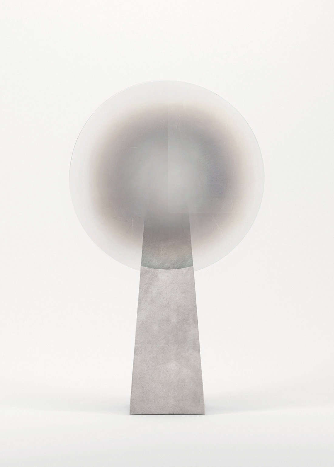 La pratique de Senteski se caractérise par une audace expérimentale. Son œuvre englobe une gamme éclectique d’objets, allant de ses lampes monumentales en bronze à ses peintures-miroirs emblématiques, en passant par ses bancs en acier inoxydable poli. Malgré la diversité des matériaux et des techniques, un langage cohérent, alliant minimalisme et expression poétique, unit ses pièces.
