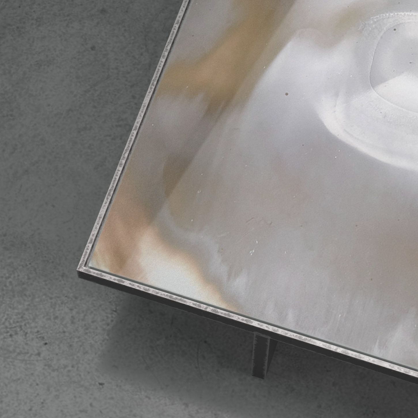 Les peintures-miroirs de Senteski comptent parmi ses œuvres les plus reconnaissables. En laissant l’oxydation de l’argent suivre son cours, il crée des miroirs uniques, faits main, qui brouillent la frontière entre fonction et art. Son processus embrasse l’imperfection, sublimant les transformations naturelles en éléments de design. Ces miroirs sont à la fois des affirmations sculpturales et des réflexions philosophiques sur la nature de la perception humaine.