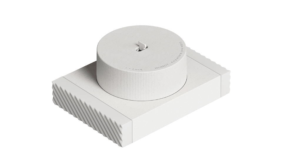 Le système proposé par le studio COG est destiné à toutes les personnes locataires, qui ne veulent ou ne peuvent pas percer les murs. Lorsqu’on est locataire, on a tout de même envie de s’approprier les lieux avec des éléments qui nous ressemblent. C’est par ce constat que NOMOT est né. Les créateurs offrent une variante de leur premier système NOMOT, qui servait de support à tringle à rideaux, sur le même principe. Ici, le support est adapté pour installer des stores.