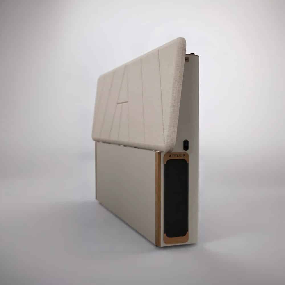 C’était sans compter sur AirTulip. Cette tête de lit intègre de façon originale un purificateur d’air, pour filtrer la poussière, les polluants et allergènes lorsque vous dormez.