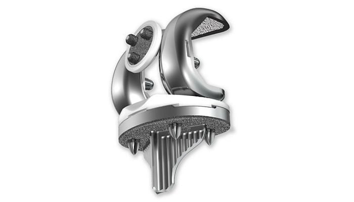 La photo montre le modèle Triathlon Tritanium, l’orthèse de genou non cimentée.