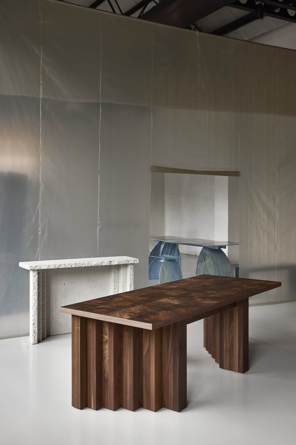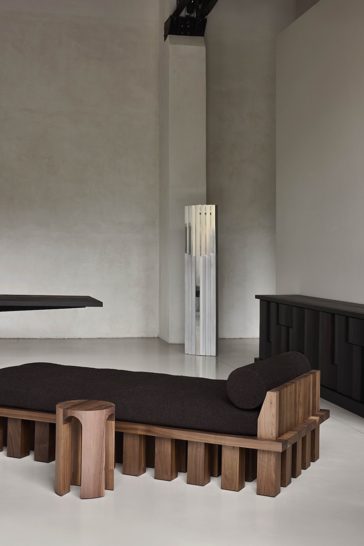 La texture est un élément clé dans le travail des trois designers. Bien que leurs choix de matériaux varient, il existe une résonance et une harmonie évidentes dans la manière dont ils façonnent et définissent les surfaces. La pureté de leurs compositions crée un sentiment de force, laissant une impression durable sur le public. Le contraste entre les matériaux ajoute de la profondeur à leur affinité commune pour l’artisanat.