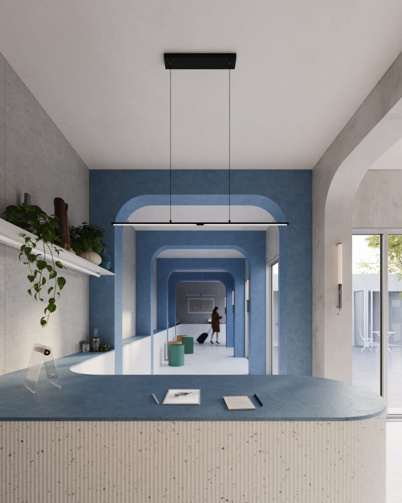 ici en exclusivité, vous découvrez une version usinée, rainurée, permettant dans le projet ci-dessous de recouvrir le comptoir et les assises de ce projet hôtelier.