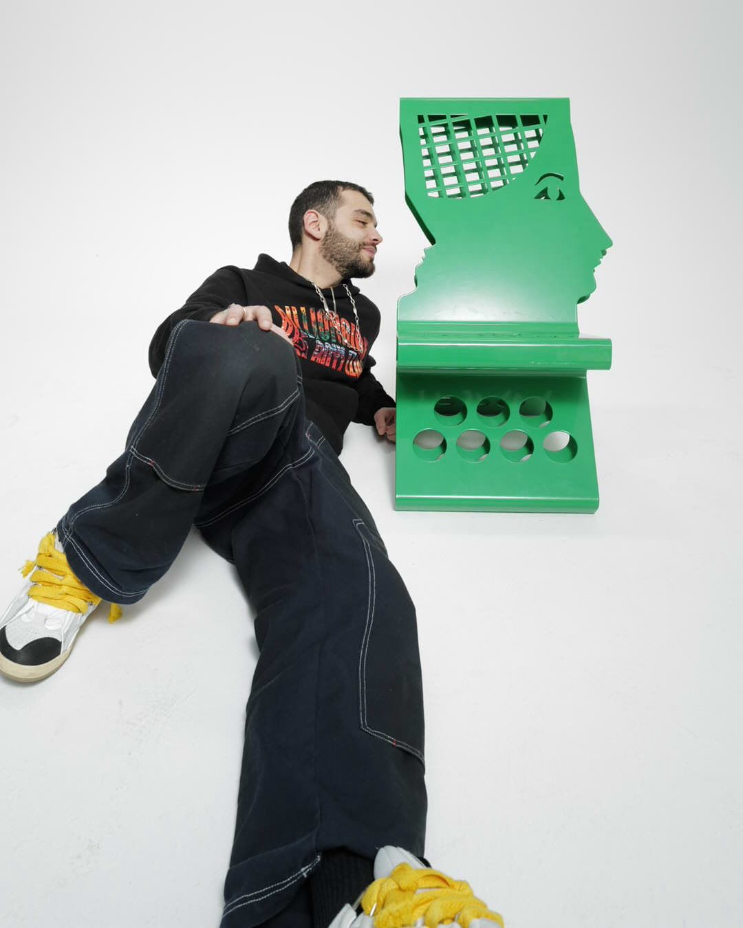 Merci @fabienmontique d’avoir choisi notre chaise @hall.haus x @jcdecastelbajac pour le workshop de DA & shooting production de @virgilabloh___foundation