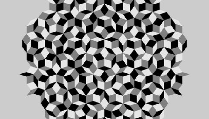 Le motif en pavage de Penrose illustre bien le comportement des quasi-cristaux. Il utilise quelques formes géométriques simples, mais leur assemblage crée un dessin complexe qui ne se répète jamais, même à grande échelle.