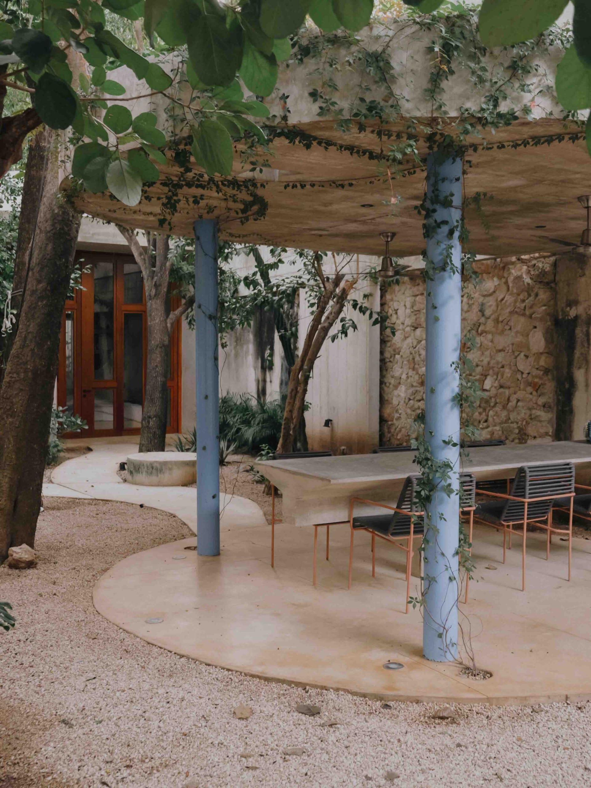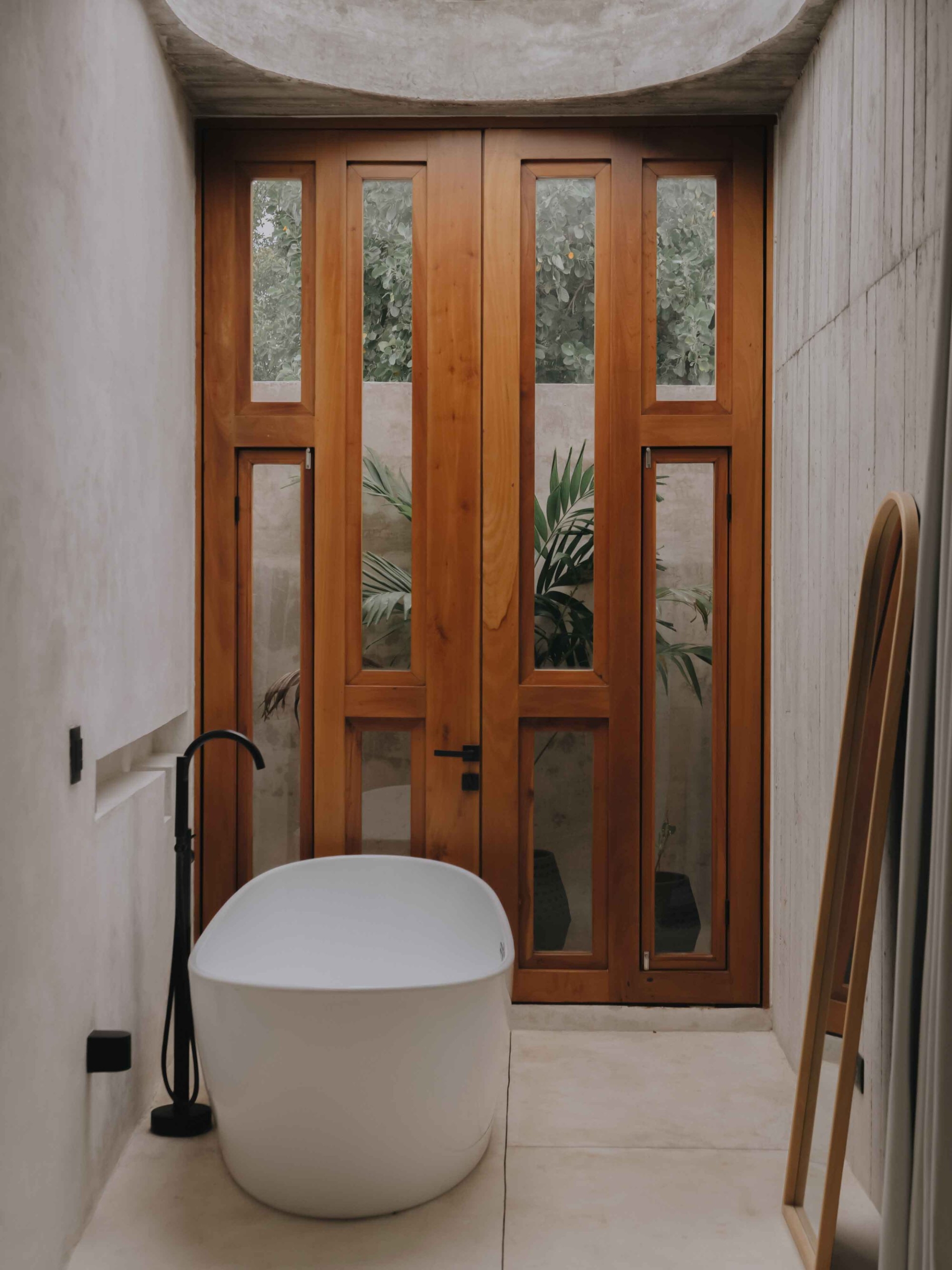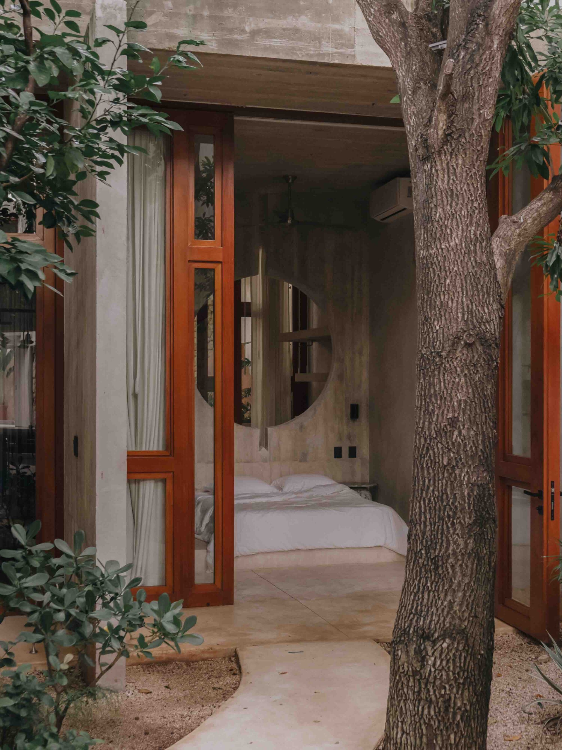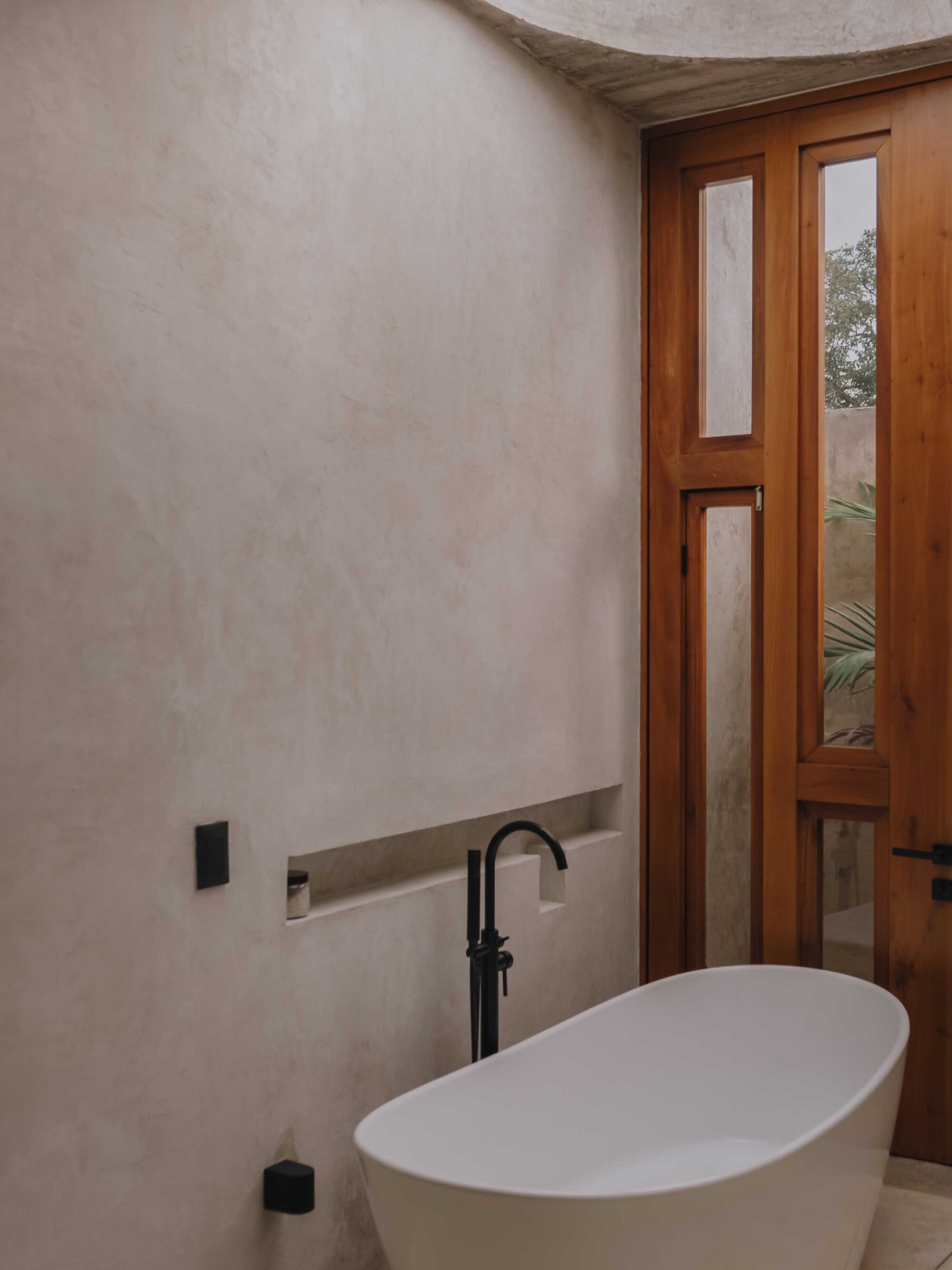Casa Soskil est aussi un essai tout en contrastes, composé à partir des dualités naturelles du site. À l’avant, baignée de soleil, la vie se concentre autour d’une piscine et d’un solarium, véritable espace lumineux d’énergie sociale. Vers l’arrière, ombragé, la vie ralentit vers l’introspection, avec un foyer, des chambres et un bureau encastré dans les ombres tamisées. Cette fragmentation délibérée de la vie domestique en pôles d’activité et de repos transforme le mouvement à travers la maison en une danse rythmée entre ombre et lumière.