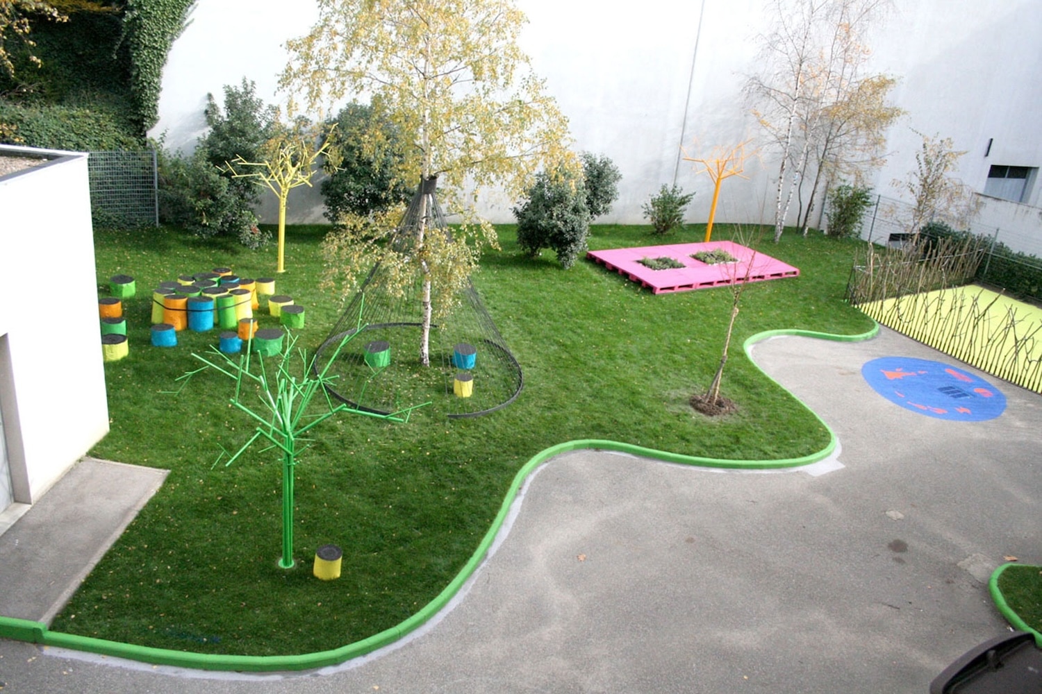 En 2008, Sara de.Gouy signe son premier projet de cour de récréation à Saint-Étienne, avec le centre socio-culturel Boris Vian. Le lieu : un ancien parking. Le défi : imaginer une cour qui ne soit pas qu’un espace de passage, mais un lieu de vie, de jeu, et de création.