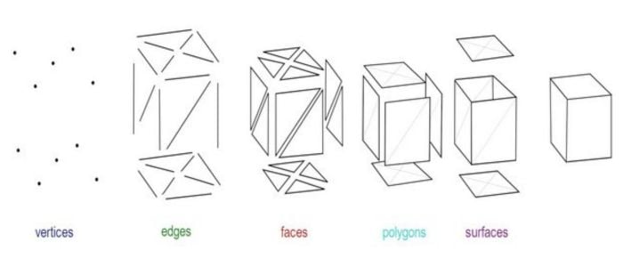 Les surfaces, ou faces, sont créées lorsque plusieurs arêtes se rejoignent pour former une zone plane et fermée. Si une face est déplacée ou déformée, cela entraîne également des changements sur les sommets et arêtes qui la composent, puisque ces éléments déterminent sa forme. En résumé, dans un polygone, toutes les parties sont interdépendantes : modifier un seul élément — sommet, arête ou face — a un impact direct sur la géométrie complète du modèle 3D.