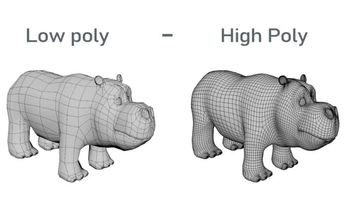 En modélisation 3D, on distingue généralement deux types de modèles : les modèles à haute densité polygonale (High-poly) et ceux à faible densité (Low-poly). Un modèle High-poly se caractérise par un niveau de détail très élevé et contient un grand nombre de polygones. Ces modèles ne sont pas toujours créés par modélisation polygonale classique ; ils sont souvent générés à l’aide de techniques basées sur les voxels. Les voxels, équivalents tridimensionnels des pixels en 2D, sont des unités volumétriques qui stockent des informations essentielles sur la forme et la matière. Les technologies voxel permettent de créer des objets 3D en temps réel, qui peuvent ensuite être convertis en maillages polygonaux à l’aide d’algorithmes automatisés. Ce processus permet d’obtenir des modèles extrêmement détaillés, mais ceux-ci requièrent généralement une capacité de stockage importante en raison de leur complexité.