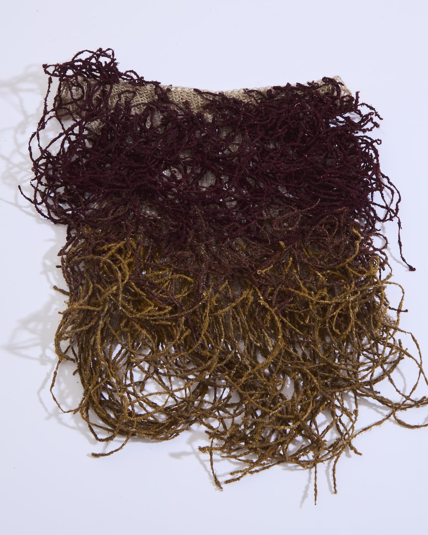 Finaliste du prestigieux Loewe Craft Prize 2025, Mytilula est un rideau à double face tricoté en fil de cuivre (face externe) et en byssus (face interne). Ce dernier, surnommé soie de la mer, est issu des déchets de la mytiliculture. Le cuivre repousse les rayons du soleil, tandis que le byssus conserve la fraîcheur intérieure grâce à ses propriétés isolantes. Ce rideau incarne une réponse poétique et technique aux enjeux bioclimatiques actuels.