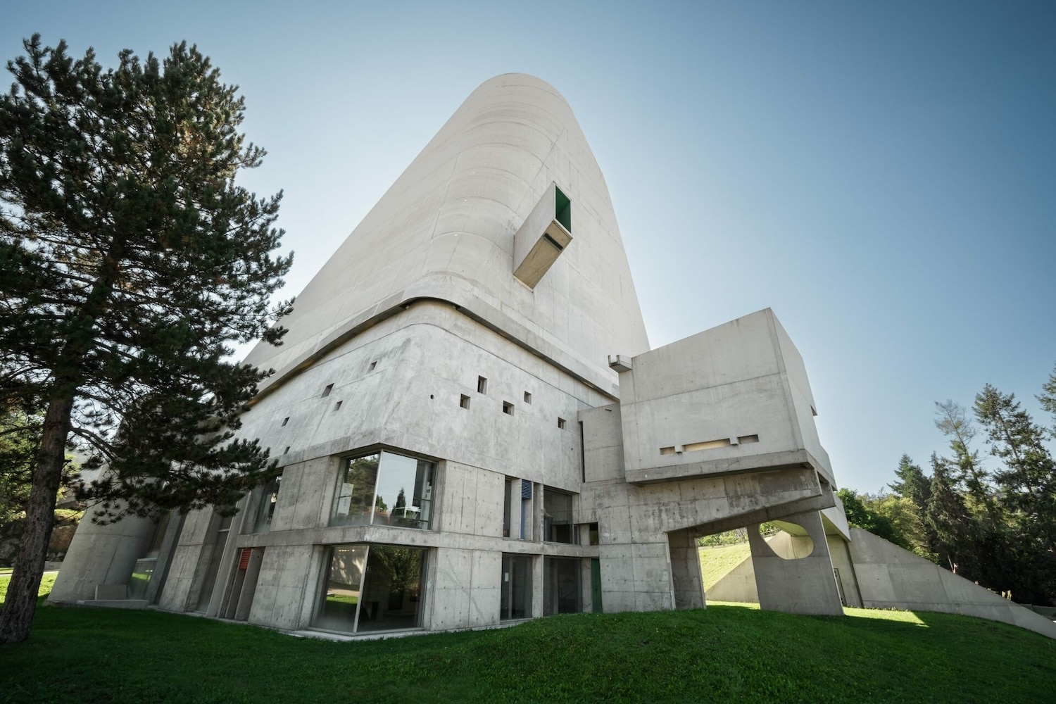 Plus qu’un simple contenant, l’église Saint-Pierre – achevée par José Oubrerie après la mort de Le Corbusier – devient un acteur central de l’exposition. Son architecture brutaliste et spirituelle incarne la transition entre passé et futur, entre sacré et profane. L’espace devient support de narration, espace de projection et d’expérimentation.
