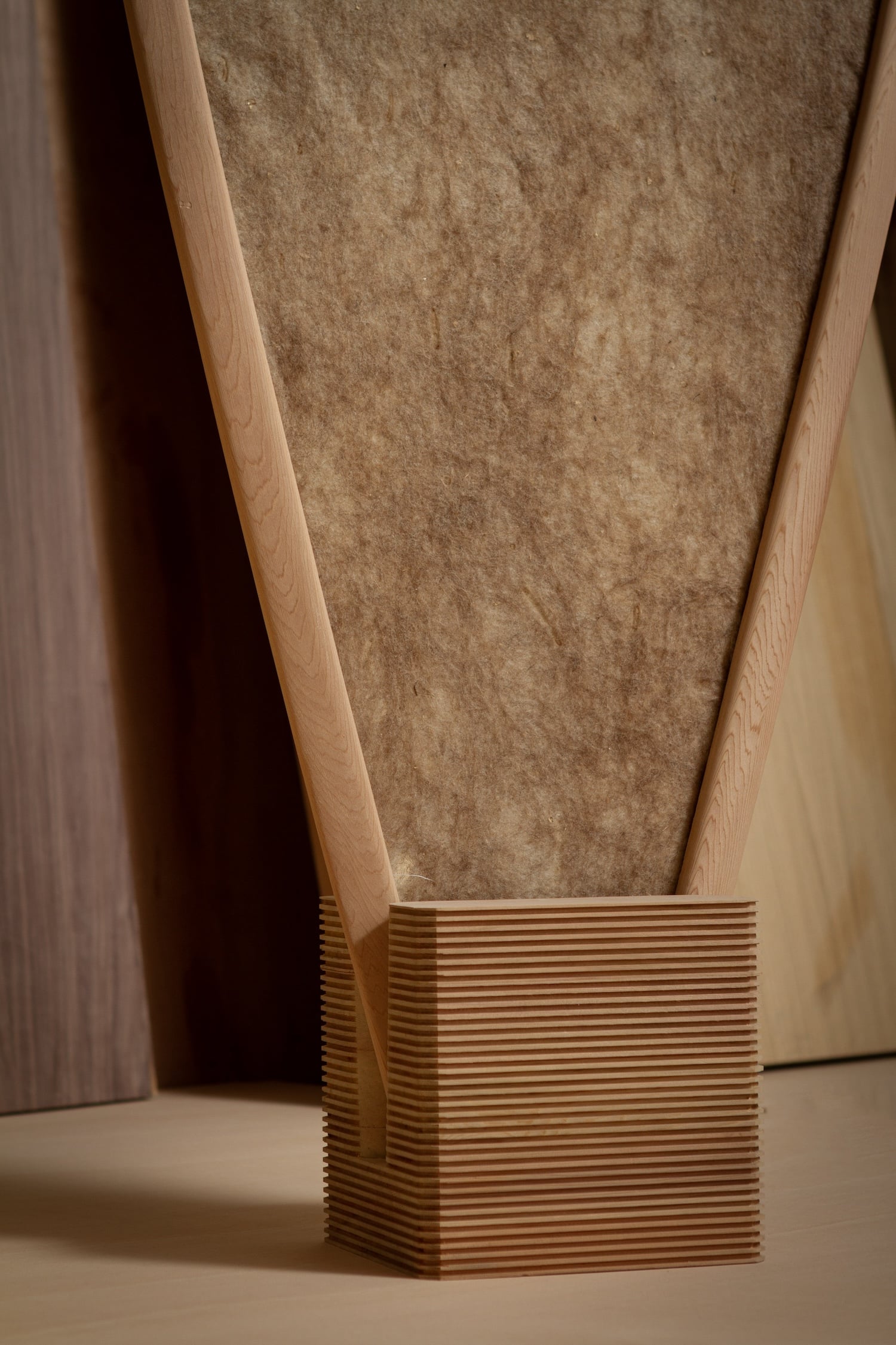 Fruit du Julien Coutureau Design Studio, (déja passé sur BED pour son projet Sciuna) Volatilis incarne une vision du design comme vecteur de questionnement, de transmission et de transformation. Inspiré par une volonté de ralentir, d’observer, de ressentir, ce paravent déploie une narration matérielle subtile entre densité du bois et souplesse de la laine.