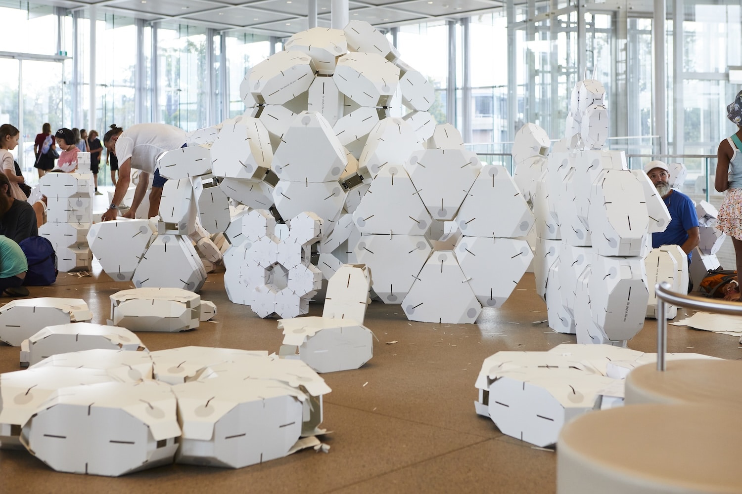 Depuis sa création en 2008, Collective Paper Aesthetics explore les frontières entre architecture, art et éducation. Leur concept repose sur des modules en carton pliable, inspirés de structures géométriques complexes, permettant la construction d’installations à grande échelle. Ces structures ne sont pas seulement esthétiques, elles sont conçues pour être manipulées, assemblées et réinventées par le public, favorisant ainsi l’apprentissage des principes STEAM (Science, Technologie, Ingénierie, Art et Mathématiques).