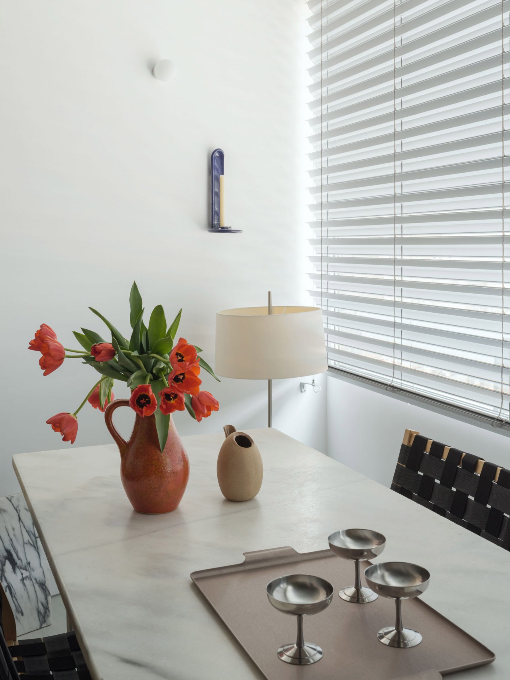 Dans tout l’appartement, Eduardo a été attiré par la beauté brute des matériaux. Par leur façon de refléter la lumière et de redéfinir l’atmosphère d’un espace de vie lorsqu’ils sont placés dans un nouveau contexte.