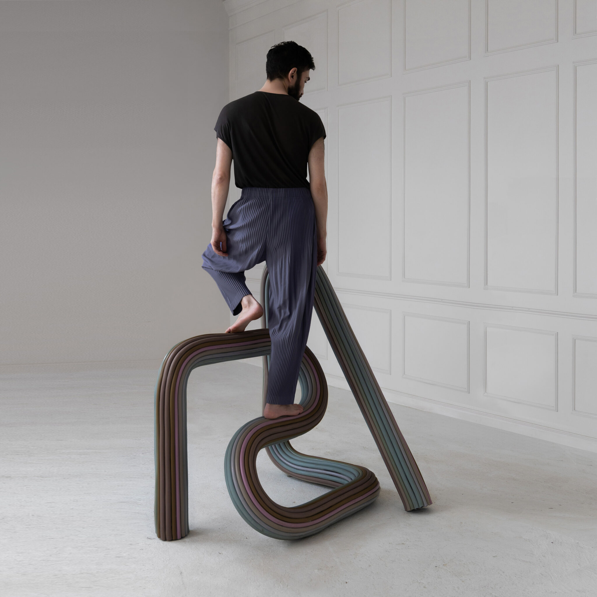 Son approche expérimentale nous rappelle qu’une exploration ludique et une profonde introspection peuvent donner naissance à un design inattendu, mais évocateur.