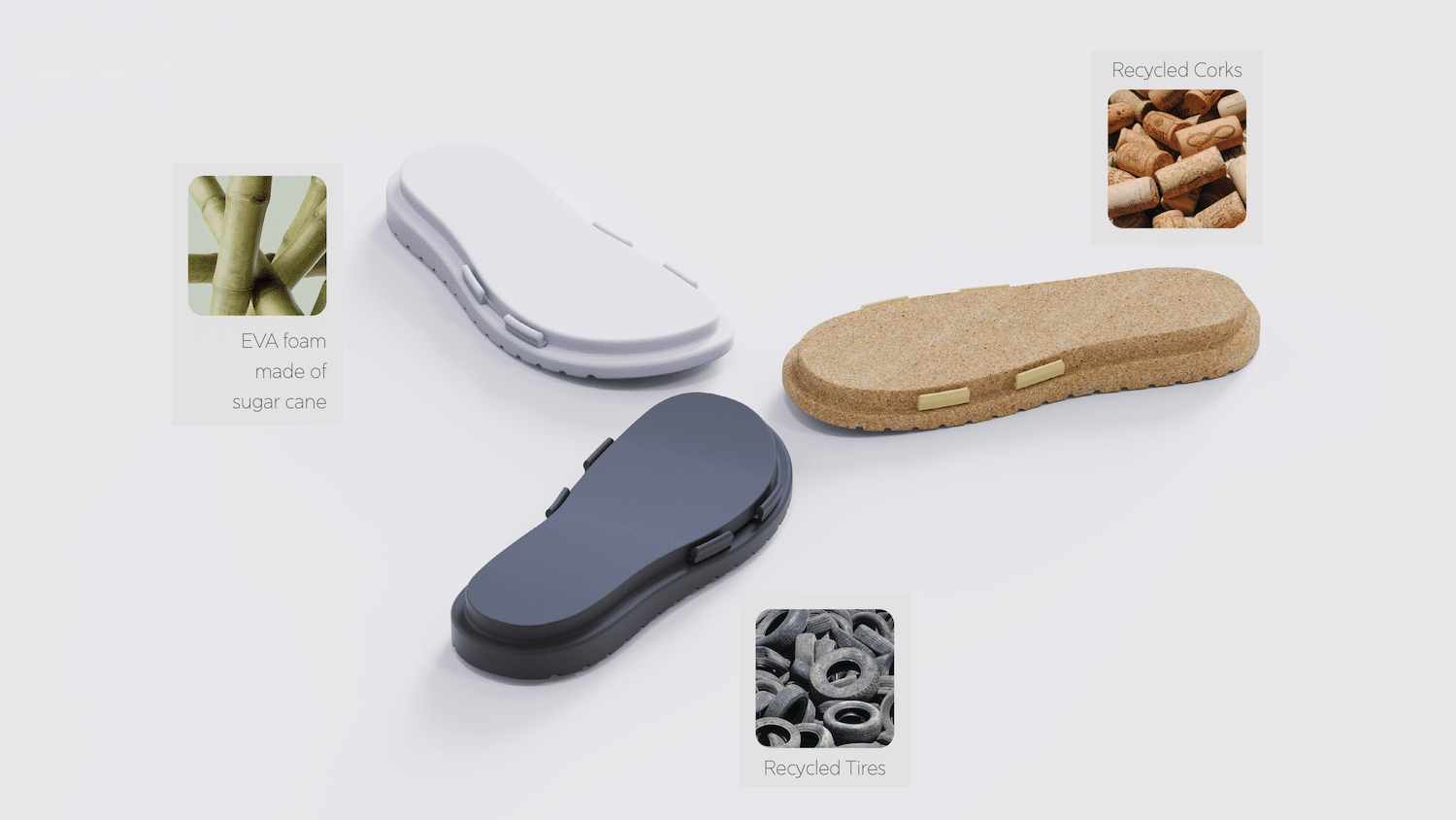 En décomposant la pièce et permettant, de faire évoluer, changer, remplacer une ou l’autre pièce, on offre une seconde vie à sa paire. La semelle aussi se décline en différents matériaux, pneus, bouchons, bambou autant de matériaux à explorer pour notre habillement. Le design est alors au coeur des réflexion d’évolutions.