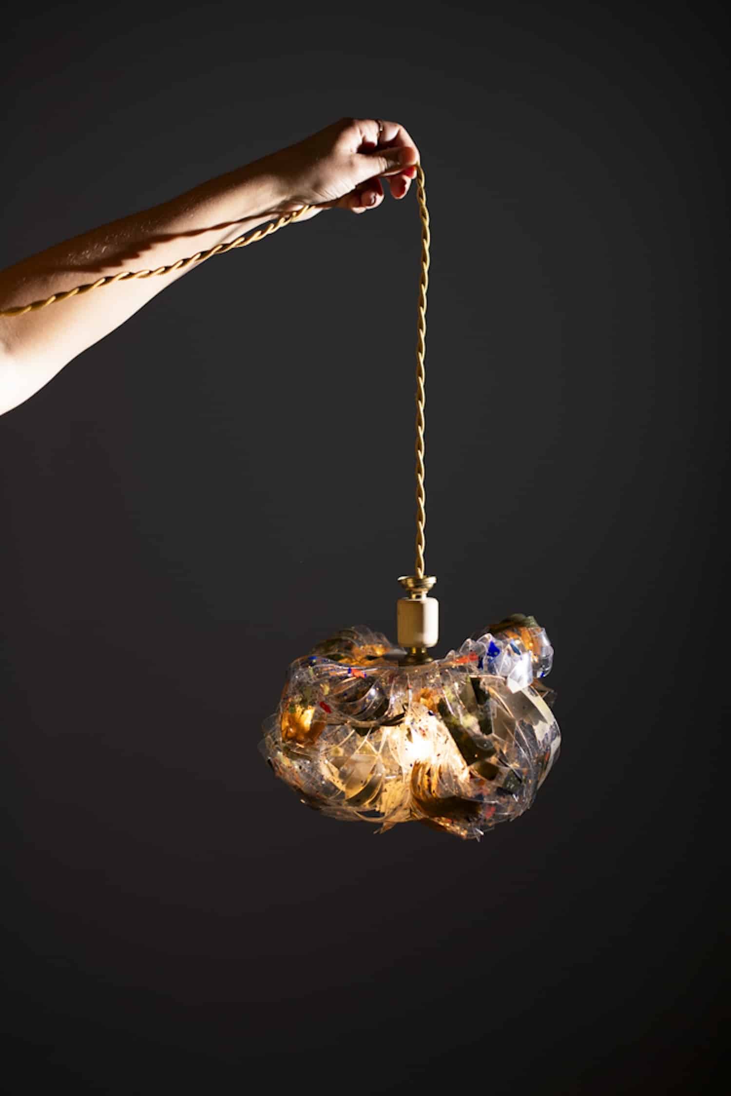 L’Artyl n’est pas un matériau comme les autres, il est issu d’un procédé de polymérisation à froid inventé par Lucia Javicoli en 2017, de type vinyle transparent, souple et recyclable, il contient 57 % de solution saline et 43 % d’éthylène.