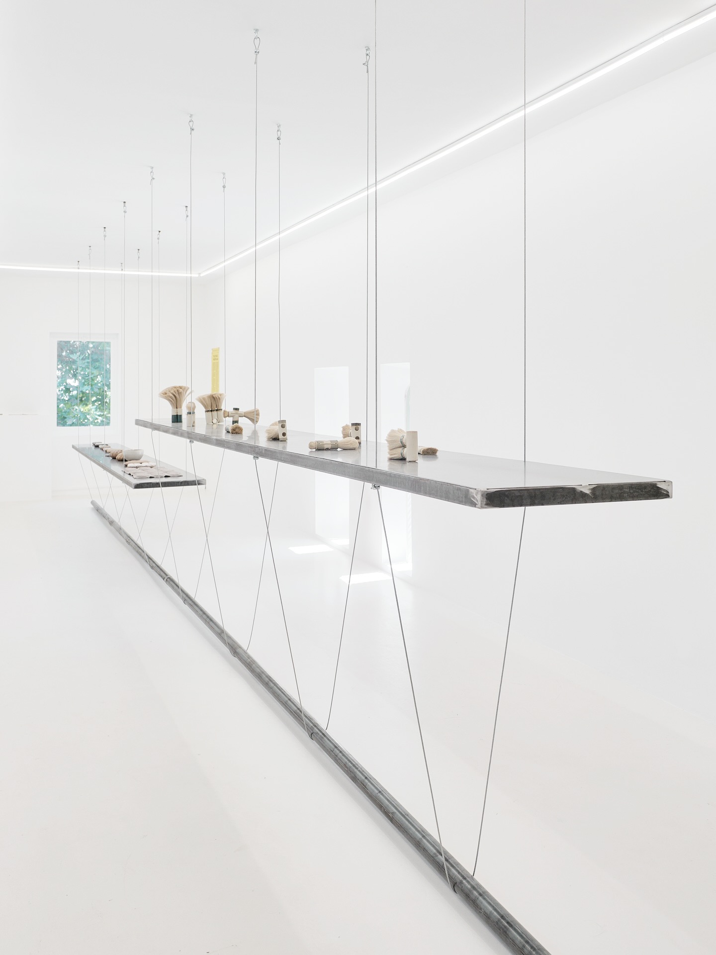 Dans la première salle, les objets forment des bandes transversales : dès l’entrée, on se retrouve face à face avec les œuvres.