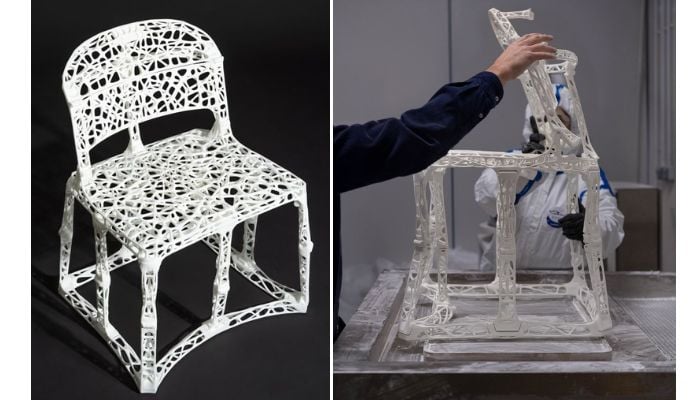 Vous vous demandez probablement quelle est l’innovation derrière cette chaise, outre le fait qu’elle soit imprimée en 3D. Car oui, ce n’est pas la première qui a fait appel à la fabrication additive. Ce projet est particulier car la chaise a été imprimée en 3D en une seule fois. Rien n’a été assemblé – aucune vis, aucune pièce supplémentaire n’a été nécessaire. C’est un projet collaboratif porté par le studio de design Jouin Manku et impliquant Dassault Systèmes et le service d’impression ERPRO. Ce dernier précise que la chaise a nécessité 35 heures d’impression sur une machine SLS d’EOS. Il aura fallu autant de temps pour le refroidissement de la pièce en polyamide. Un projet qui montre tout le potentiel créatif de la fabrication additive !