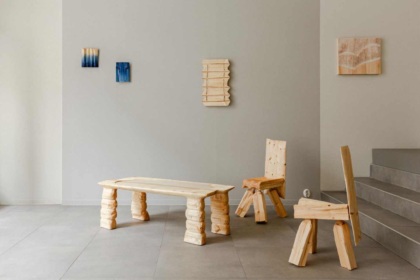 Au cœur de cette série se trouve la technique de sculpture et de brossage distinctive de l’artiste, qui sublime les rythmes organiques du grain et transforme le bois massif en surfaces plissées, comme du tissu. Le résultat est une surprenante illusion de matière : le bois paraît léger, fluide et doux.