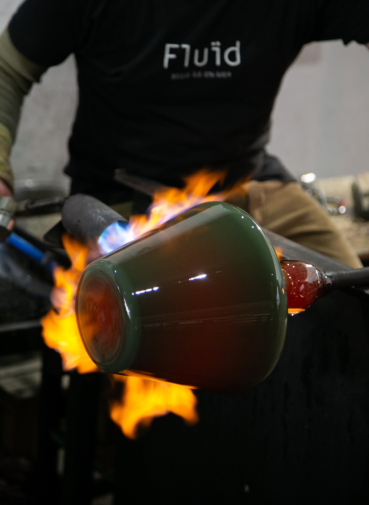 Fondée en 2008, Fluïd est une SCOP (Société Coopérative et Participative) installée à Belle-Île-en-Mer, en Bretagne. Spécialisée dans le soufflage du verre, l’entreprise allie production de petites séries et pièces uniques, façonnées avec une exigence haut de gamme. À l’écart de l’agitation urbaine, les artisans verriers de Fluïd bénéficient d’une liberté créative totale, leur permettant de se concentrer sur des réalisations uniques, imprégnées de l’âme bretonne.