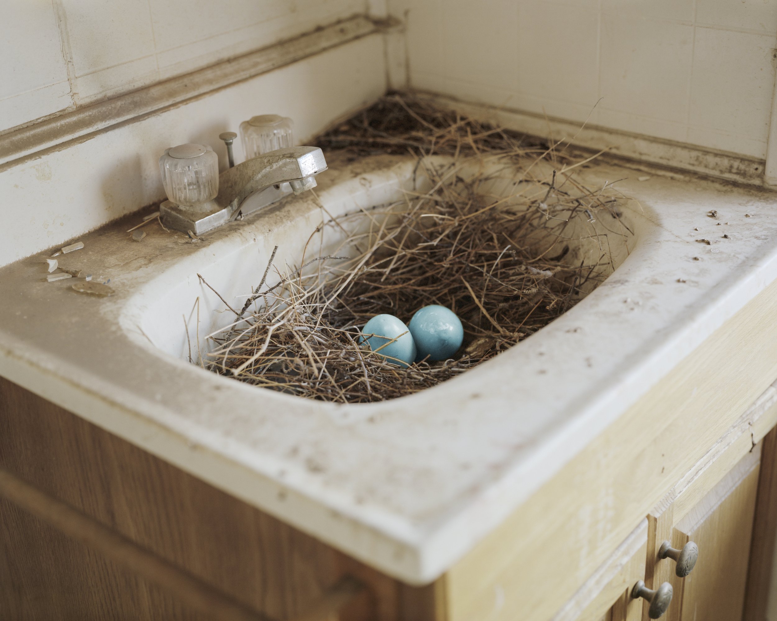 Ses photographies, bien qu’apparemment documentaires, se dissolvent dans un espace où fantômes et monstres – vestiges de la mémoire – brouillent les frontières entre réalité et souvenir.