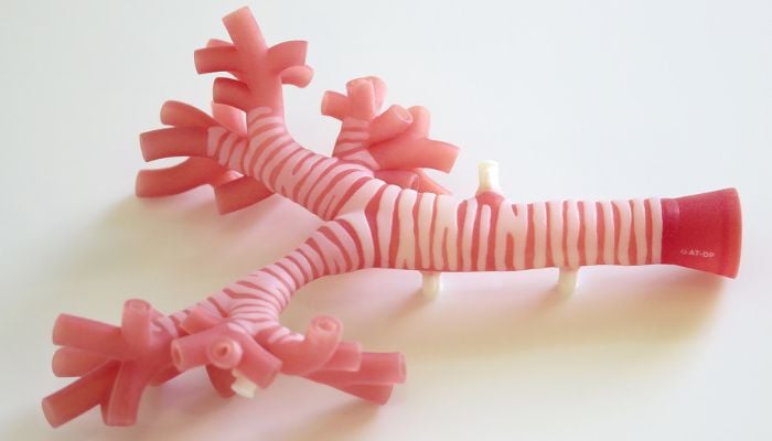 Gros plan sur le modèle de trachée.