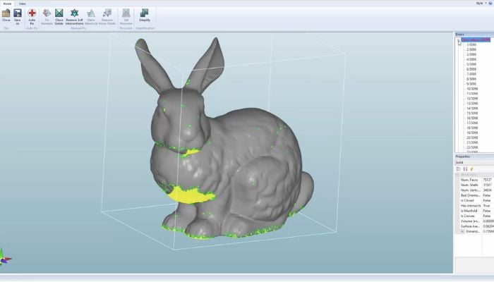 LimitState : FIX, créé par la société britannique de logiciels d’ingénierie LimitState, est une solution logicielle qui facilite le processus de correction des fichiers 3D en un clic. Elle simplifie le processus de préparation des modèles 3D pour l’impression. Dès qu’un utilisateur ouvre un fichier STL dans LimitState : FiX, le fichier est immédiatement analysé et automatiquement corrigé. Le programme détecte et répare les trous dans les solides, corrige les maillages défectueux et l’orientation des polygones. L’abonnement fonctionne par nombre de licences – si vous en souhaitez une, il faudra compter 25 livres par mois (environ 29 euros), alors que si vous optez pour 5, le prix baisse à 20. C’est donc une solution intéressante à utiliser à plusieurs.