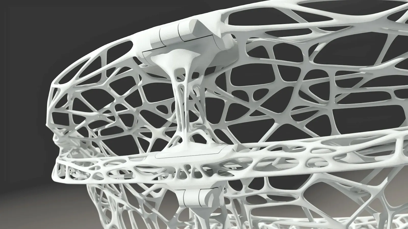 Pensée pour ne peser que 3,9 kg tout, elle pourra supporter un poids de 100 kg au maximum ! La structure en treillis s’inspire de la logique de la densité osseuse et des articulations humaines, comme évoqué plus haut lui conférant une grande résistance. Elle optimise au maximum la matière, les formes, pour ne mettre que ce qui est strictement nécessaire, rien de plus, rien de moins. L’esthétique, passe au second plan…