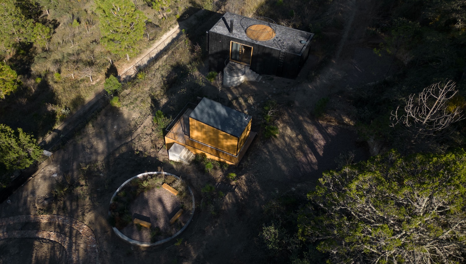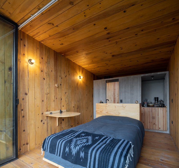 Dans cette première phase, le projet comprend deux cabanes : Cabaña Conejos (Cabane Lapin) et Cabaña Liebre (Cabane Lièvre), chacune dotée de sa propre identité et de sa propre taille, mais utilisant les mêmes matériaux : bois, béton, acier et verre.