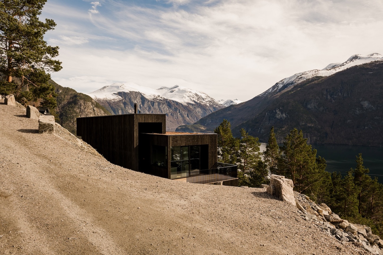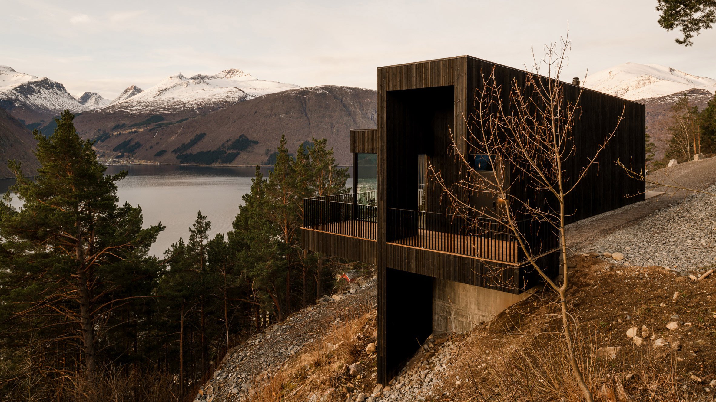 Maison de vacances perchée au-dessus d’un fjord en Norvège