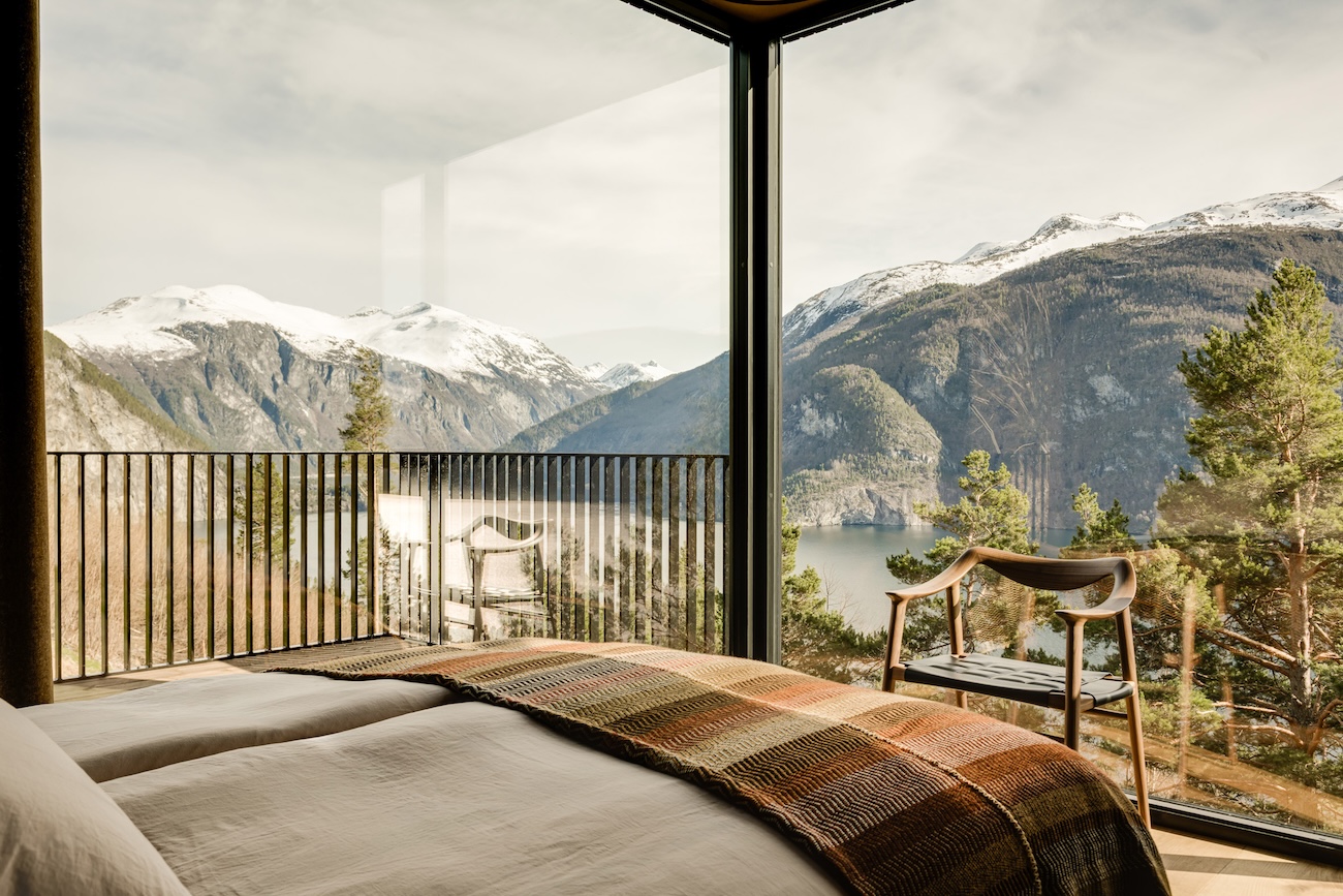 L’intérieur est calme, conçu non pas pour détourner l’attention de la vue, mais pour l’encadrer.