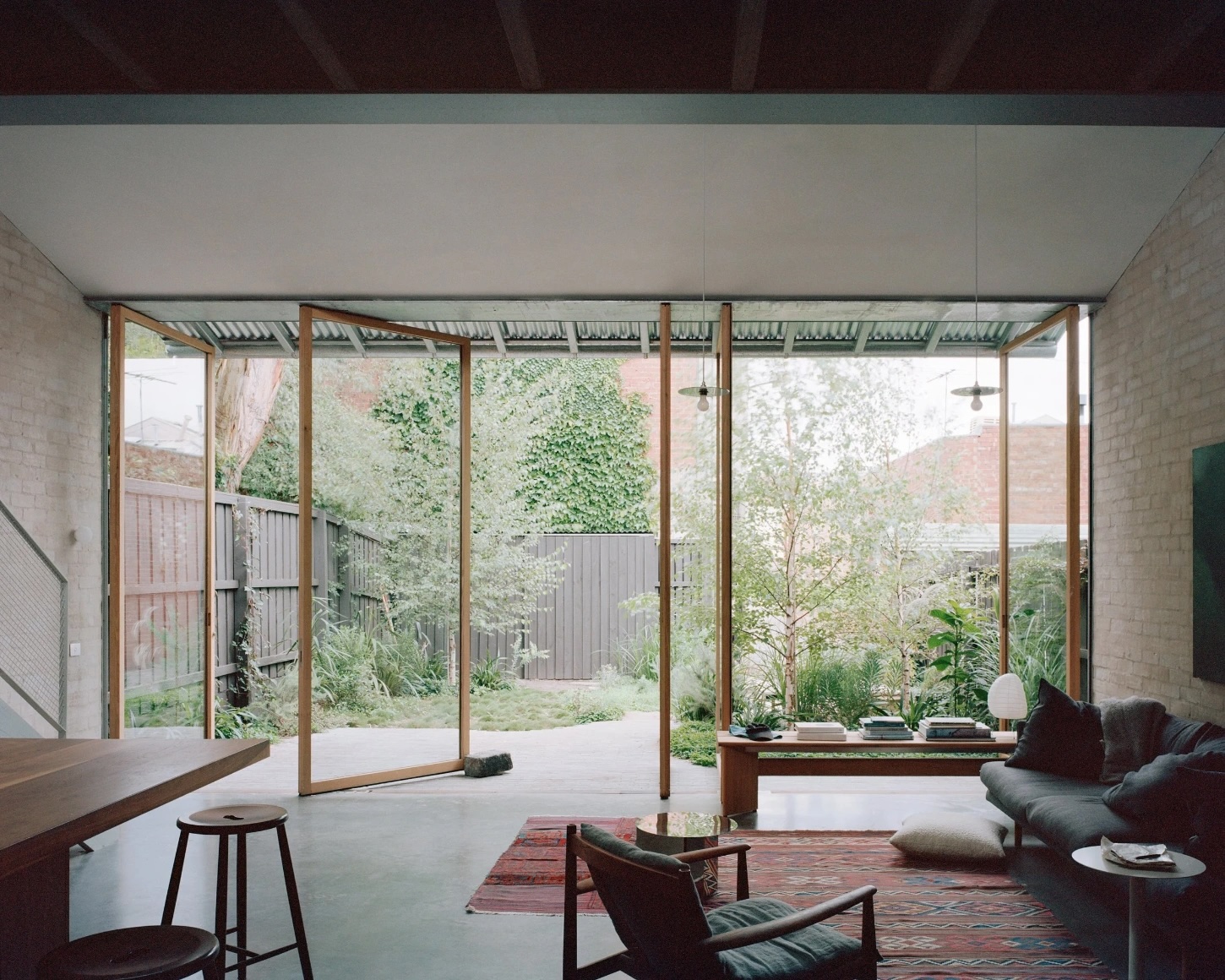 Lors de son acquisition, la maison située à Carlton (quartier de Melbourne), était en mauvais état : sombre, avec des pièces mal agencées et une ventilation insuffisante. La rénovation a conservé les quatre pièces d’origine à l’avant et ajouté un extension de deux étages à l’arrière, orientée à l’est.