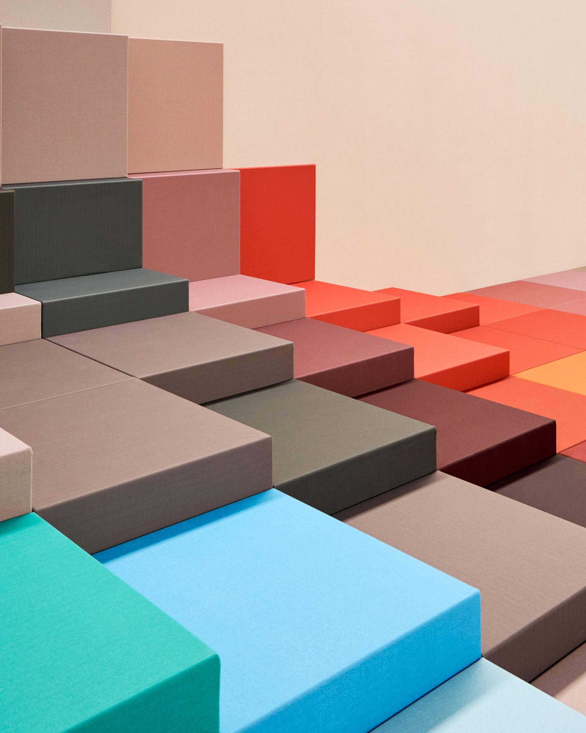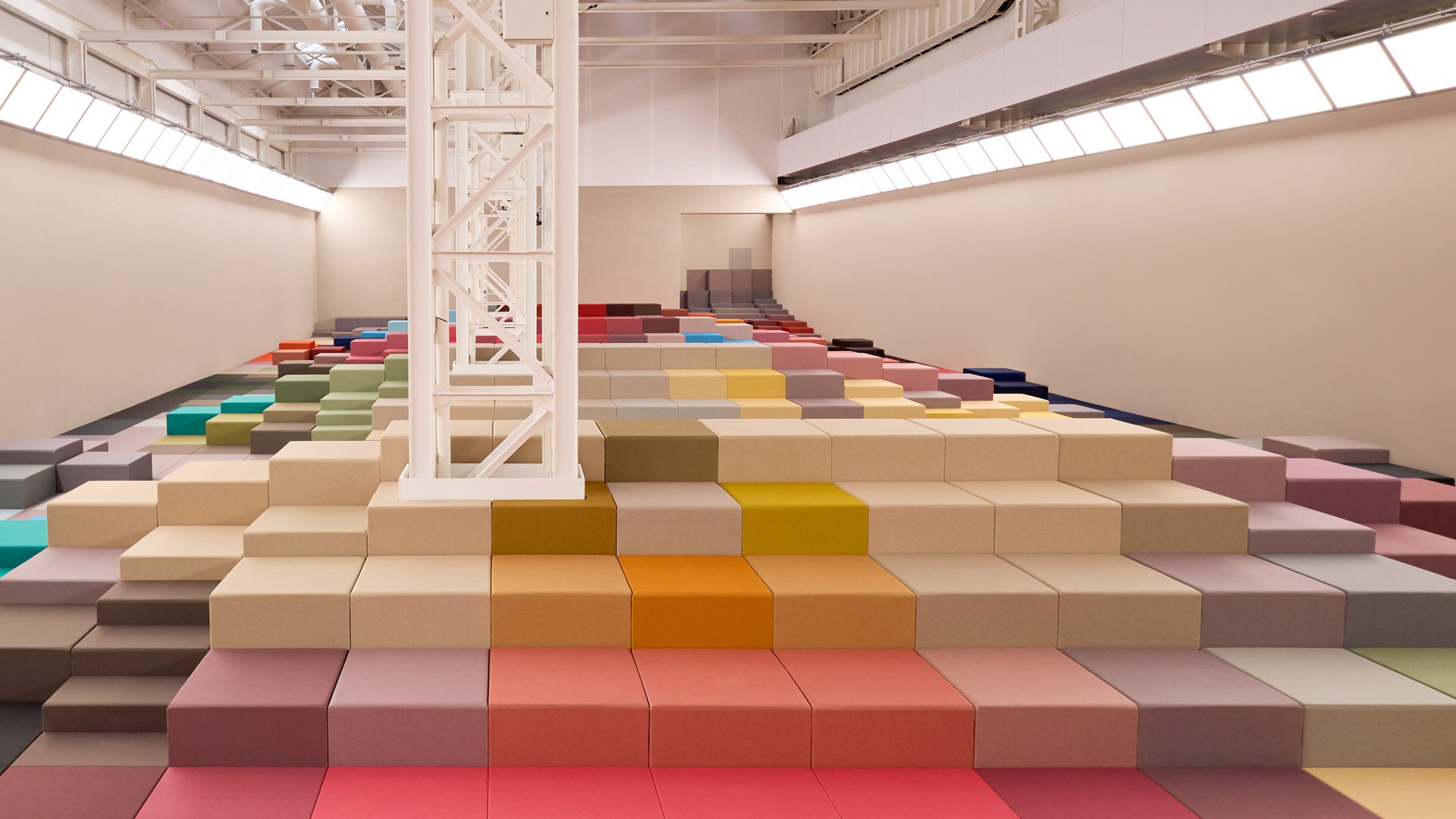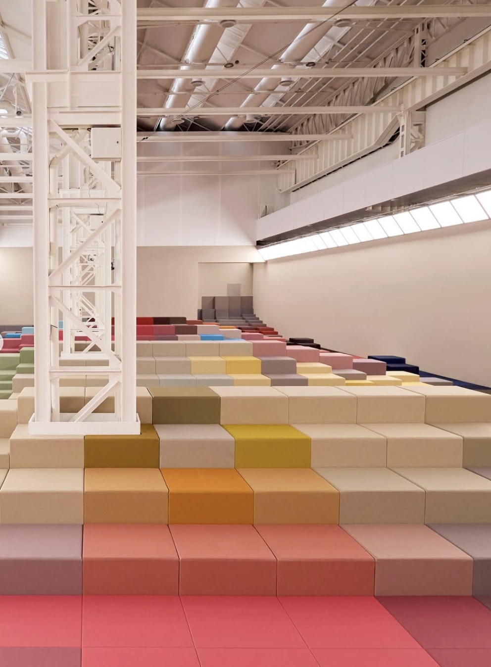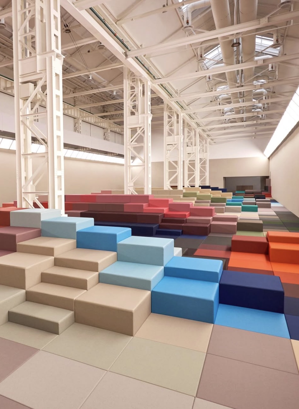 Ces ‘pixels’ ont servi à créer des gradins autour d’une passerelle sinueuse. »