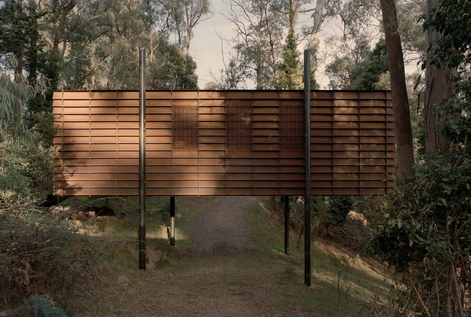 C’est dans un cadre verdoyant et montagneux, la région des Hautes Terres du sud dans l’état de Victoria, que se trouve un lieu de détente et de tranquillité, une maison perchée conçue par Robbie Walker.