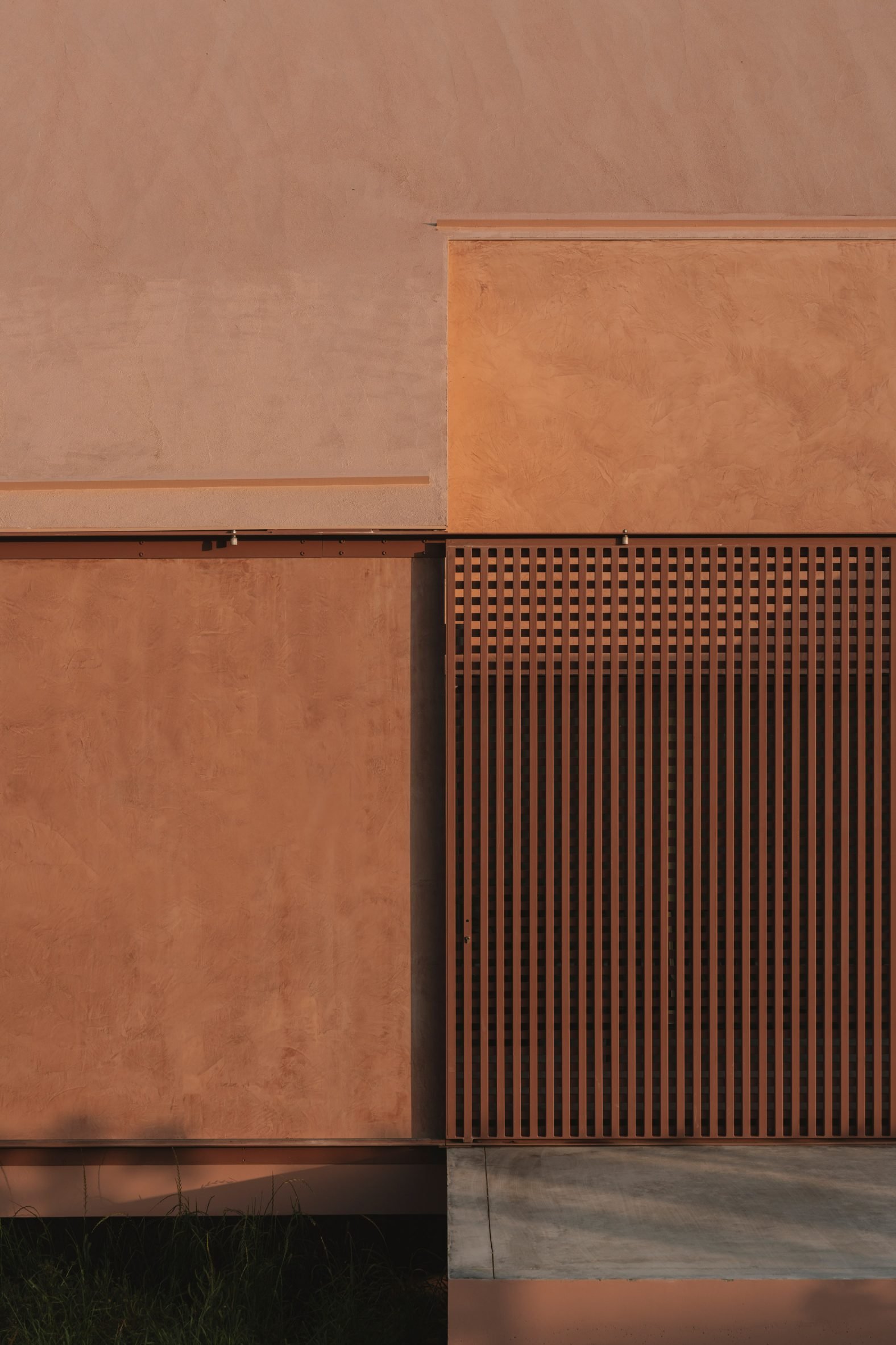 Basé à Lisbonne, Extrastudio a élevé Casa Plaj sur quatre murs porteurs en béton, laissant le paysage environnant s’écouler sous ses terrasses en surplomb, et l’a parachevée d’une couche volontairement brute d’enduit couleur terre.