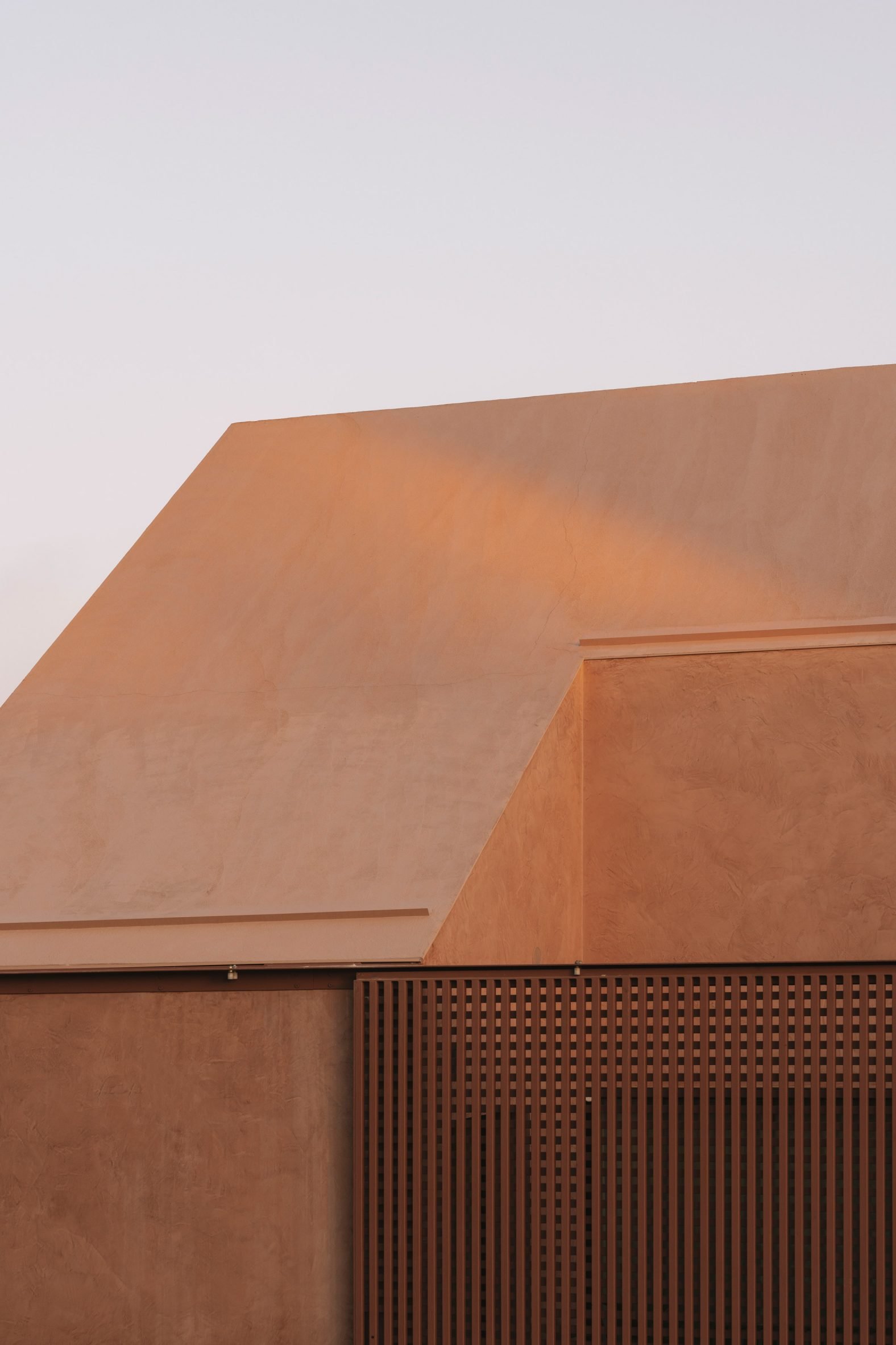 Une forme minimaliste à pignon, des terrasses en porte-à-faux et un enduit à la chaux couleur terre caractérisent Casa Plaj, une maison de vacances portugaise conçue par l’agence locale Extrastudio.