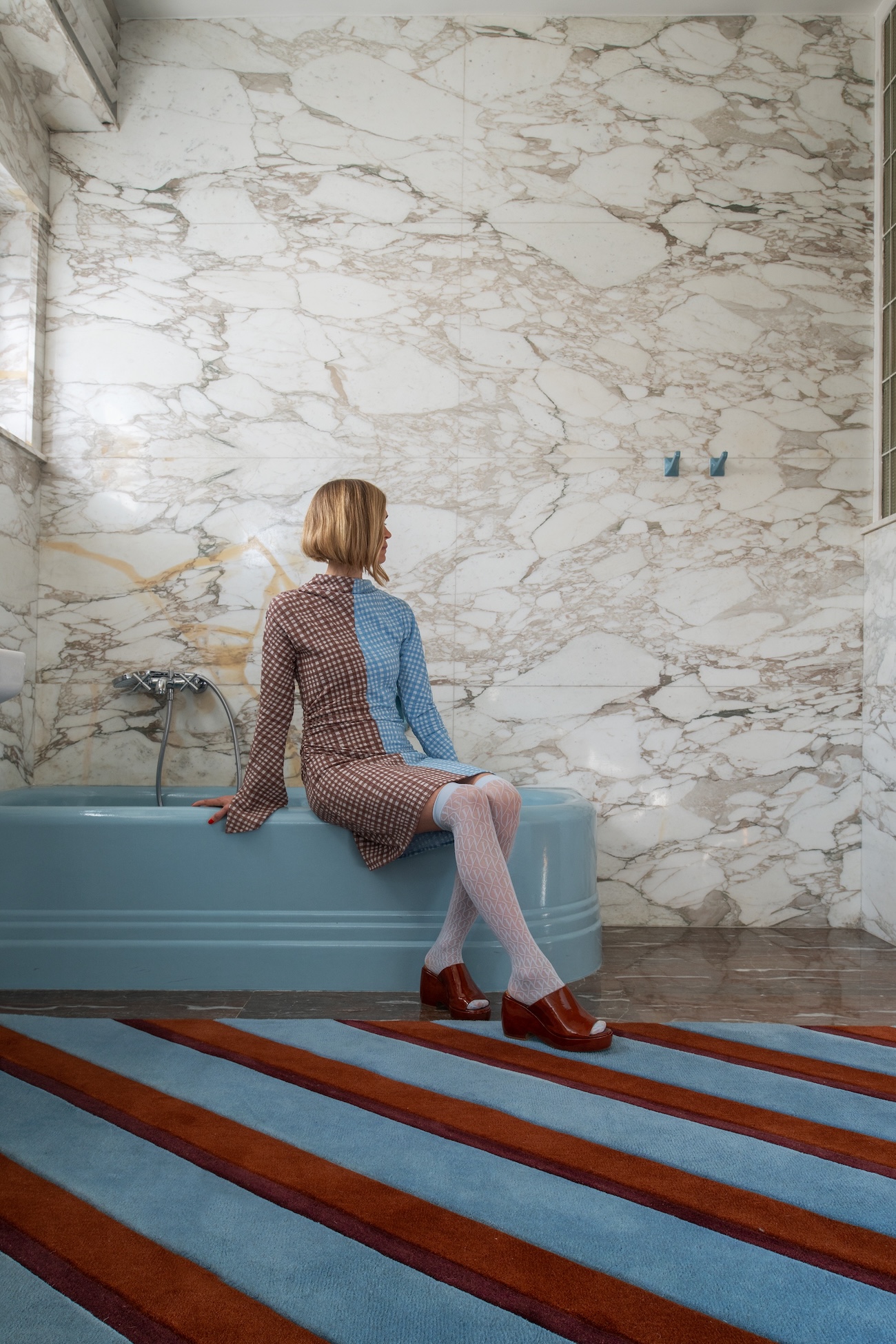 Tekla aime quand le design s’ancre dans un système tout en laissant de la place à l’expression personnelle. Elle explique que travailler avec des tapis, c’est comme dessiner une nouvelle géographie pour une pièce — elle influence la manière dont les gens se déplacent, perçoivent les dimensions et les surfaces. L’idée qu’un tapis puisse à la fois sublimer un espace ou y créer une rupture délibérée lui plaît beaucoup.