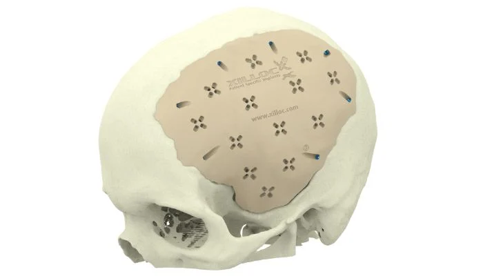 Implant crânien fabriqué en PEEK. (crédits photo : Xilloc Medical).